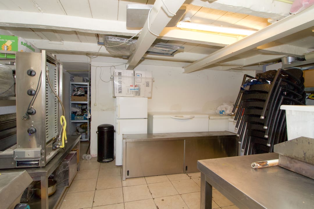 Het souterrain vormt een functionele uitbreiding van de bedrijfsruimte, uitstekend geschikt als extra opslag of ondersteunende werkruimte, met het gemak van een zelfstandige toegang van buitenaf.