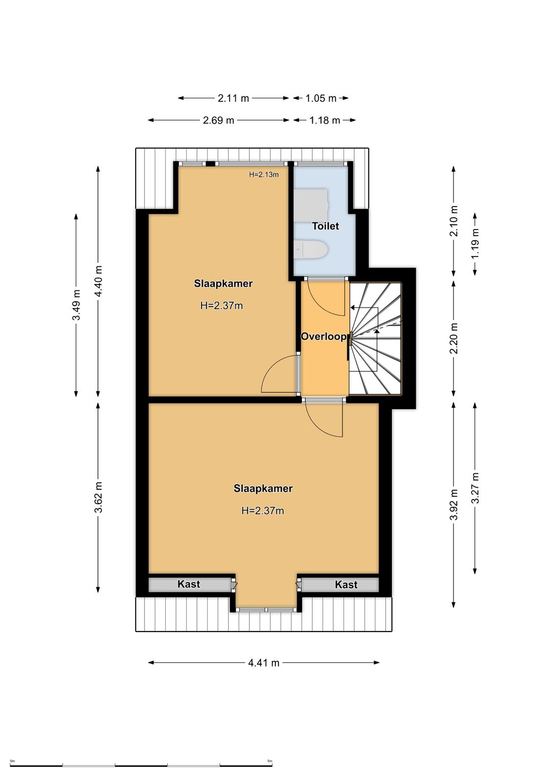- woonruimte gelegen op de 1ste, 2e en 3e verdieping totaal ca. 72 m2. De woning bestaat uit een woonkamer op de 1ste verdieping met toegang tot dakterras, 2 slaapkamers op de 2e verdieping en op de 3e verdieping de badkamer.