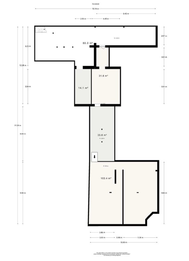 De winkelruimte omvat circa 683 m² vloeroppervlak, als volgt verdeeld: