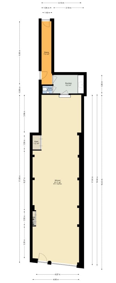 De winkelruimte kent een frontbreedte van circa 5 m¹.