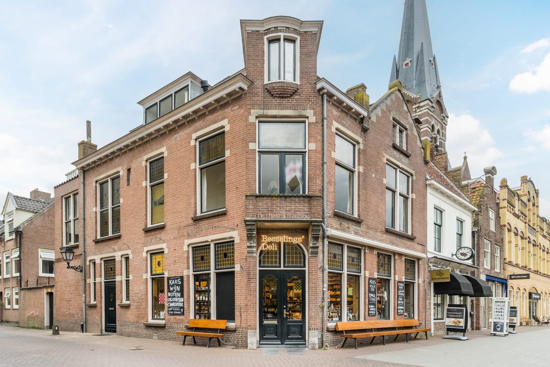 Het pand is markant, karaktervol en ruim en in dit monumentale hoekpand, met zijn opvallende gevel en authentieke details, bevinden zich een gezellige winkelruimte en een royaal appartement van maar liefst 143 m², die is verdeeld over twee woonlagen. Hier gebeurt altijd wat; van de dinsdagse weekmarkt tot zwoele zomeravonden met volle terrassen.