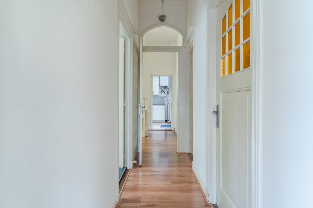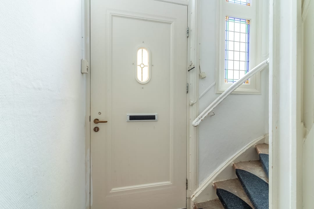 Hier bevindt zich de entree en een kleine hal met de meterkast. Vanaf hier leidt een statige trap naar de eerste woonverdieping.