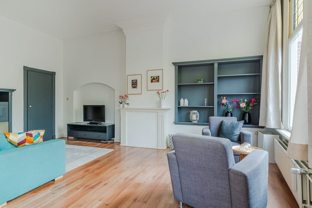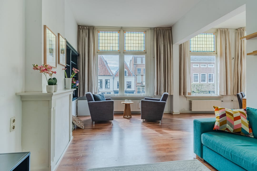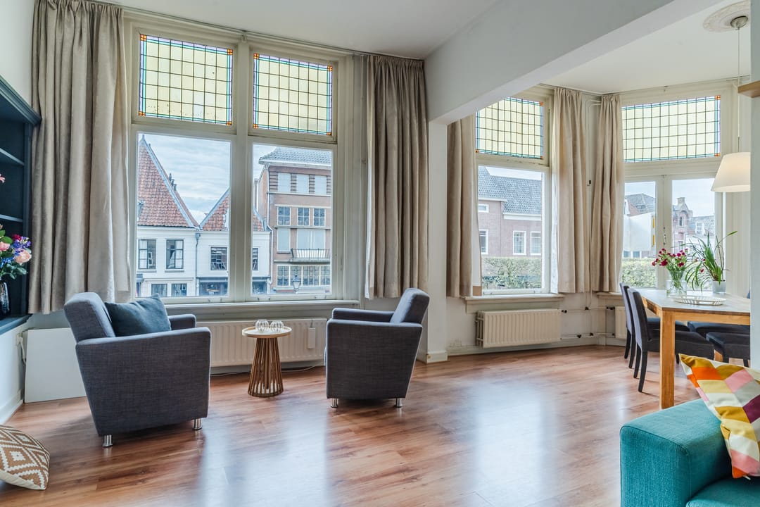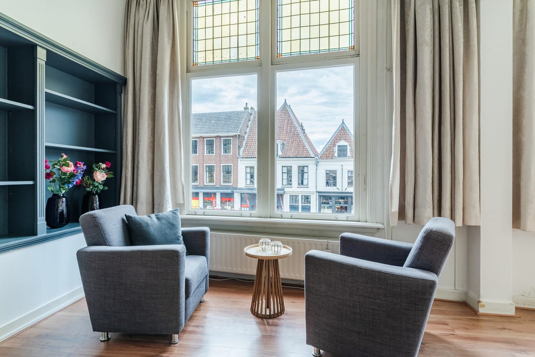 De woonkamer is hoog (3,27 meter) en heeft een riante oppervlakte van ongeveer 30 m2. Vier grote ramen bieden je hier uitzicht op de Markt met al haar levendigheid en zorgen voor ontzettend veel daglicht. De indeling geeft je meerdere mogelijkheden om de inrichting helemaal aan je eigen smaak aan te passen.