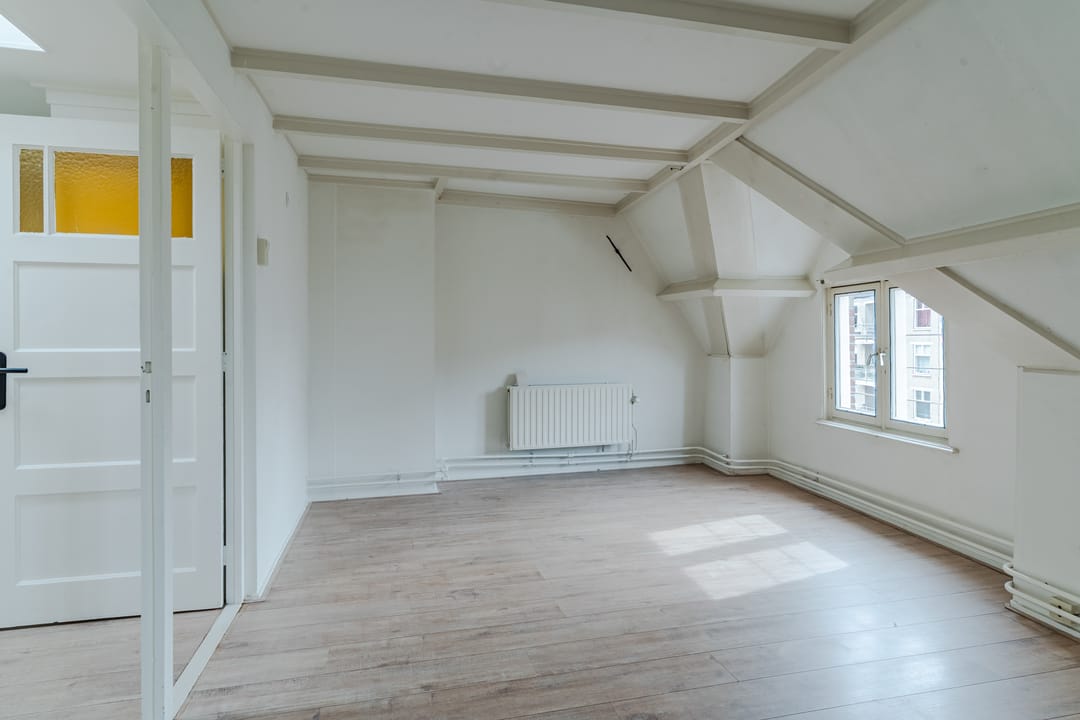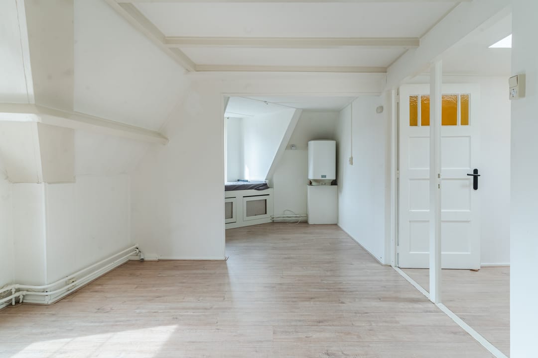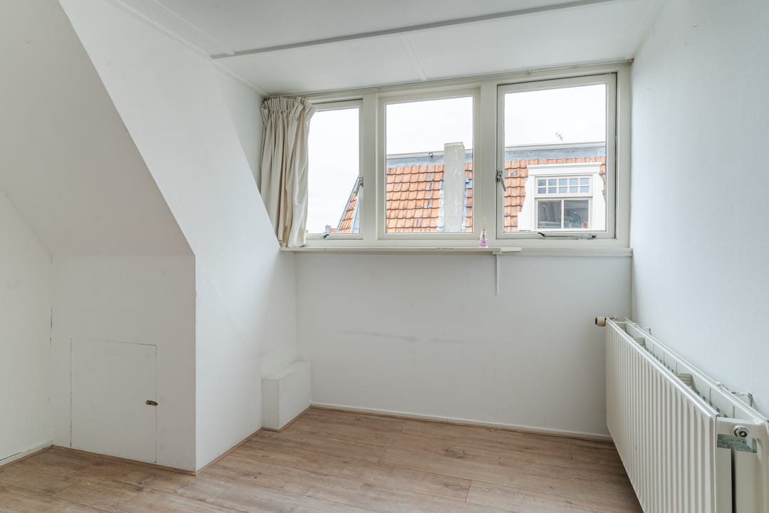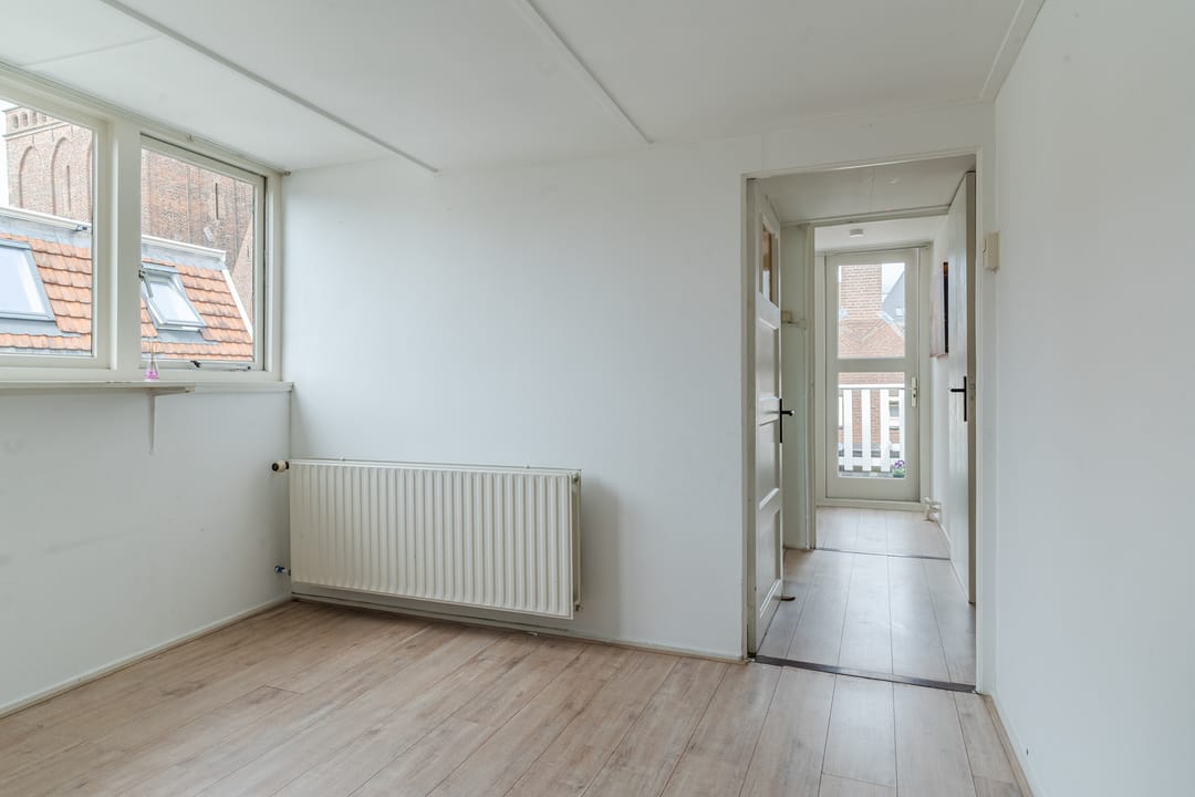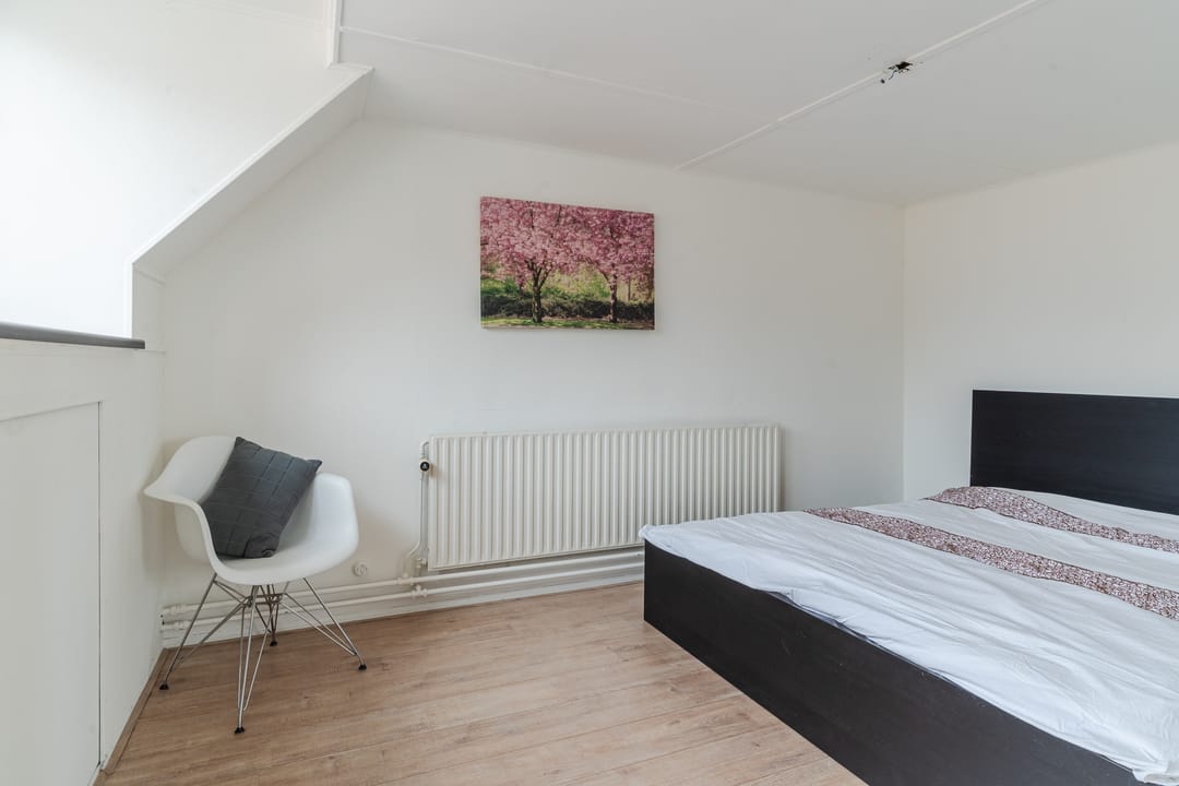 De eerste slaapkamer heeft een oppervlakte van 13 m2 en beschikt over een vaste kast. De kamer is heerlijk hoog en licht en openslaande deuren geven ook toegang tot het dakterras. Deze kamer is ideaal als eetkamer, slaapkamer of werkkamer.