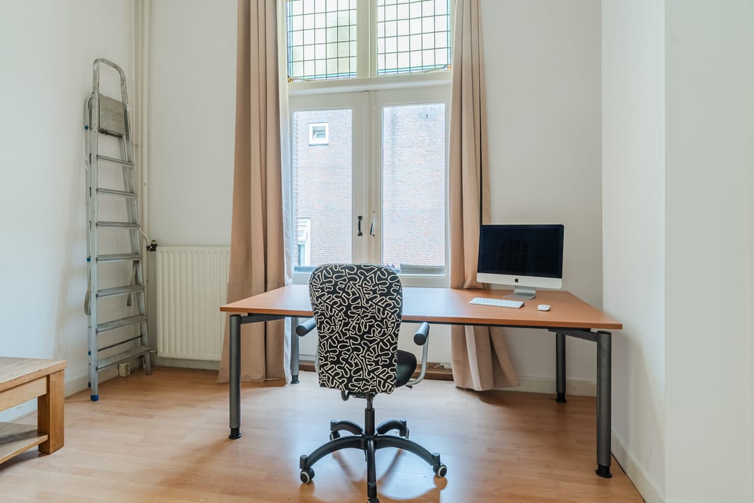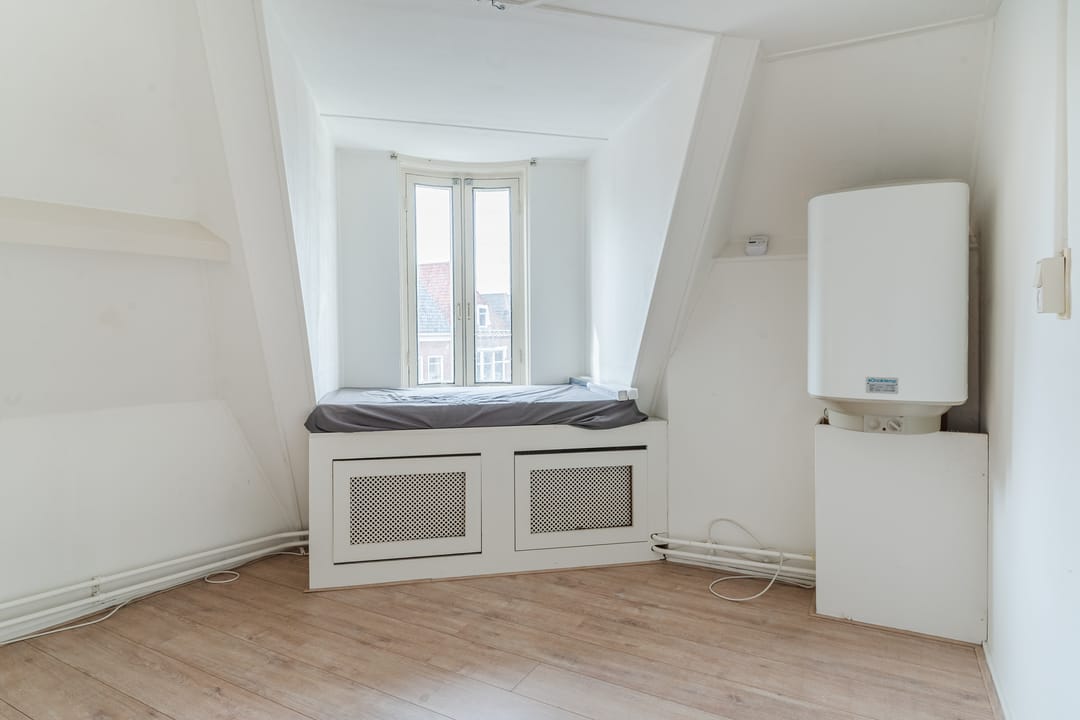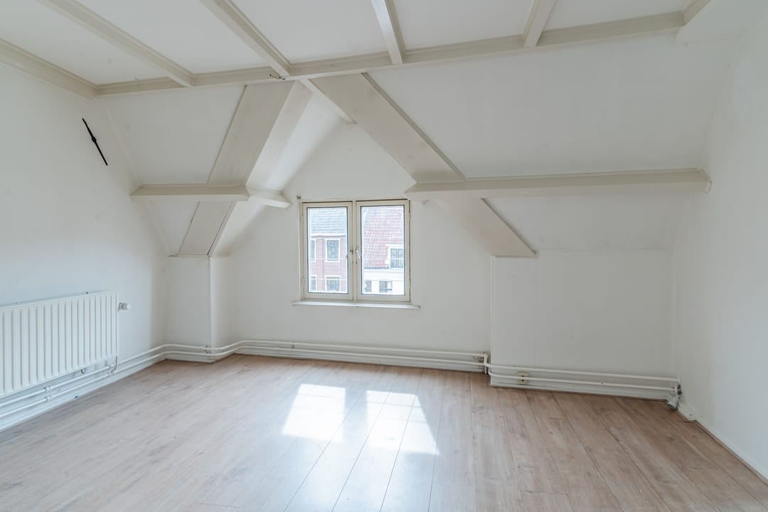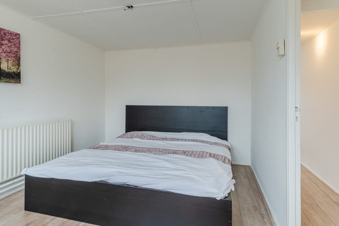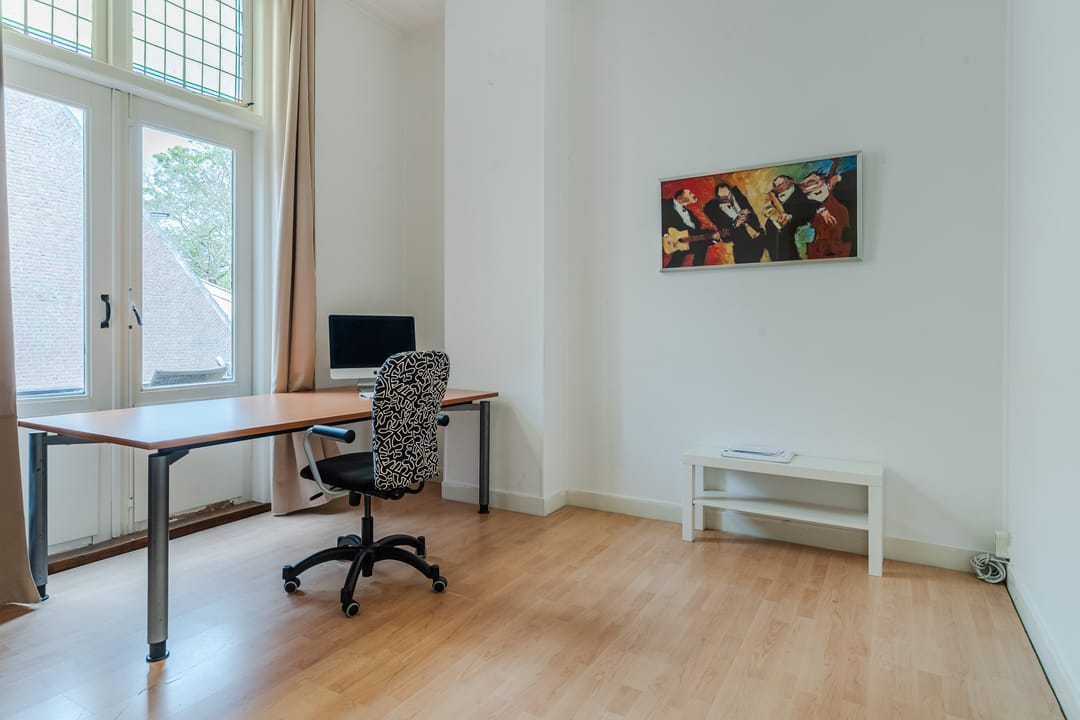 De eerste slaapkamer heeft een oppervlakte van 13 m2 en beschikt over een vaste kast. De kamer is heerlijk hoog en licht en openslaande deuren geven ook toegang tot het dakterras. Deze kamer is ideaal als eetkamer, slaapkamer of werkkamer.