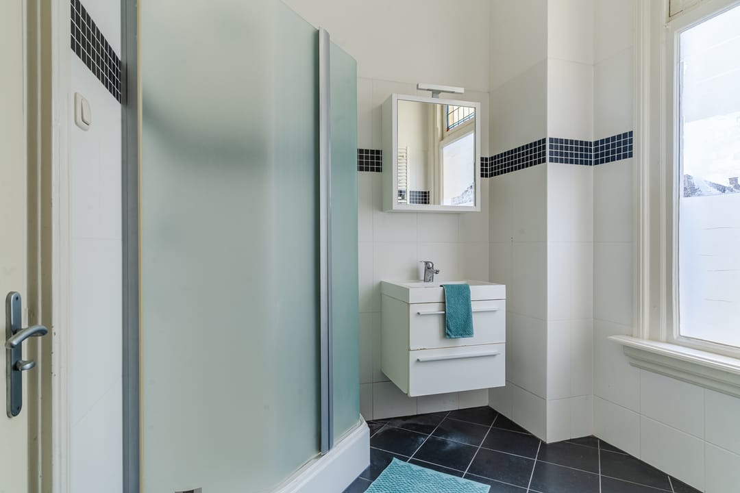 Vanaf de hal zijn ook de toiletruimte en de eerste badkamer te bereiken. Beiden zijn uitgevoerd in een lichte kleurstelling. De ruime badkamer beschikt over een douche en een wastafel.