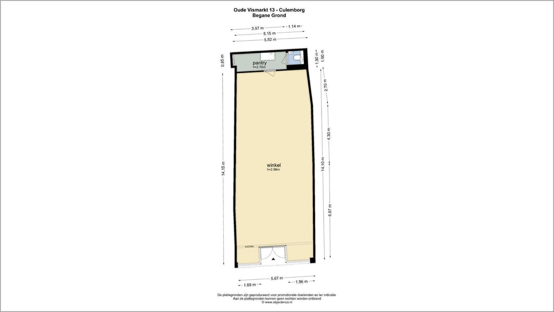 Op een markante locatie in het centrum van Culemborg ligt deze overzichtelijke en direct inzetbare winkelruimte. Met een frontbreedte van 5,67 meter en royale etalagemogelijkheden presenteer je jouw formule optimaal aan het winkelend publiek.