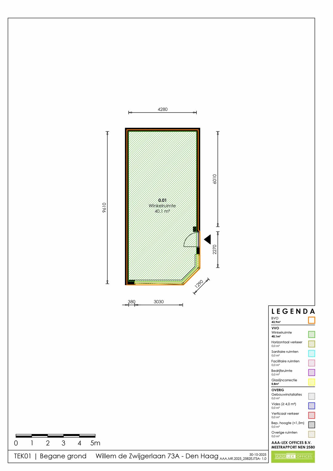 het netto vloeroppervlak omvat 41 m² Verhuurbaar Vloer Oppervlak verdeeld over de begane grond (44 m2 BVO).
