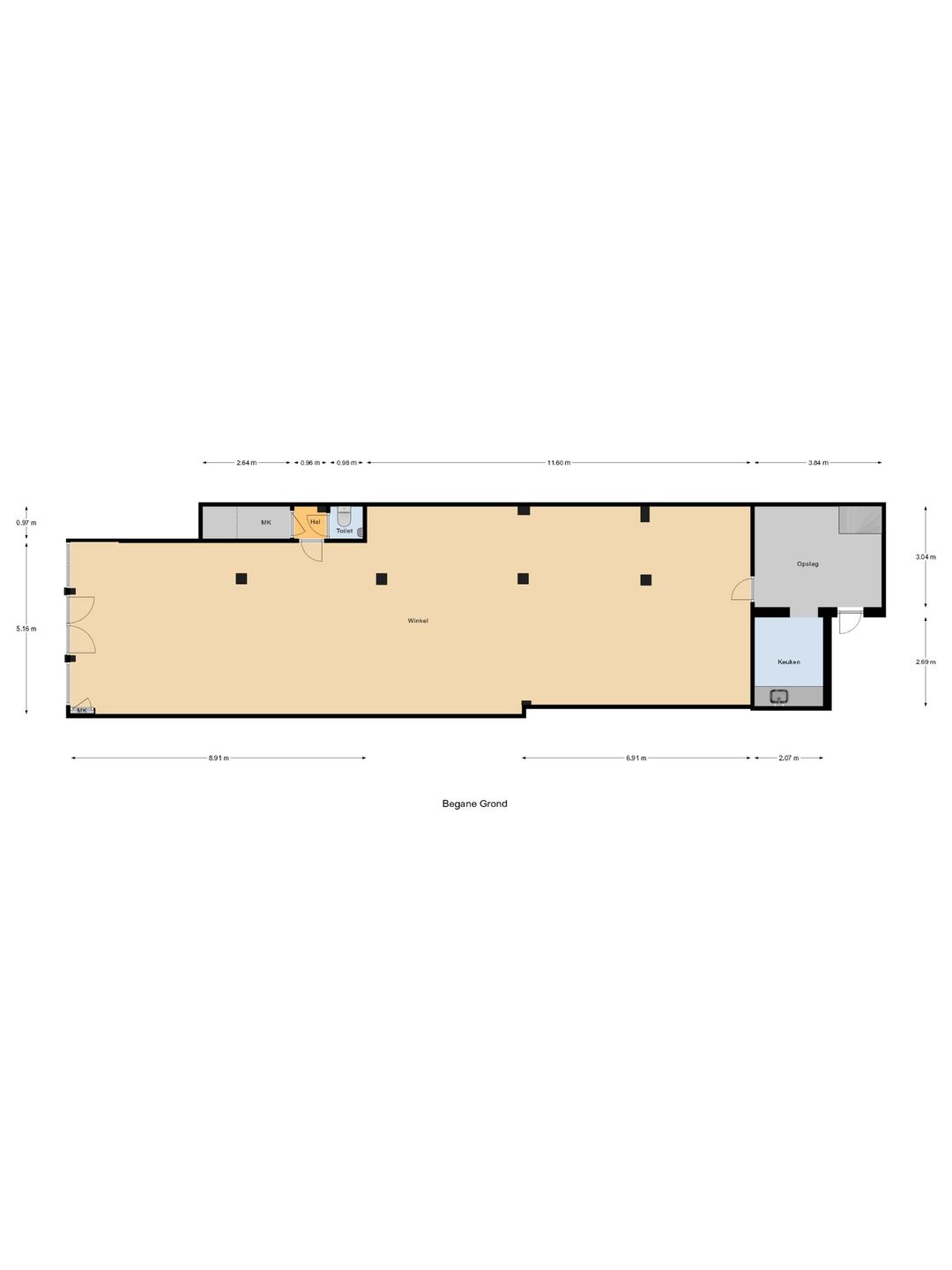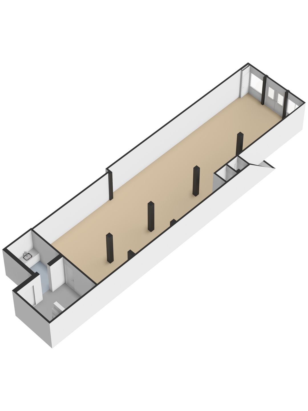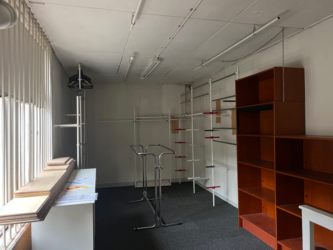 The ground floor consists of a spacious, open retail space with a separate toilet halfway through. At the rear, there is a small pantry, storage space and access to a small outdoor area, ideal for placing outdoor units for the necessary installations.