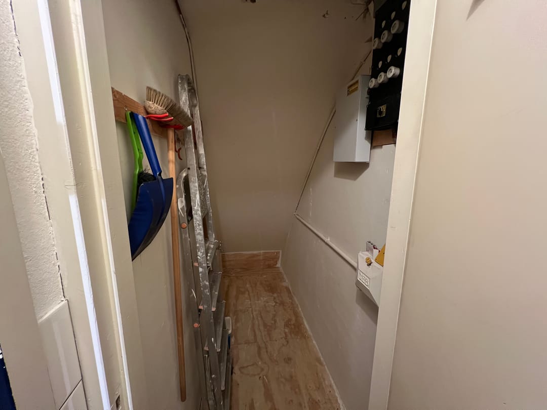 Additional storage space is available on the first floor. The central heating system is also located here.