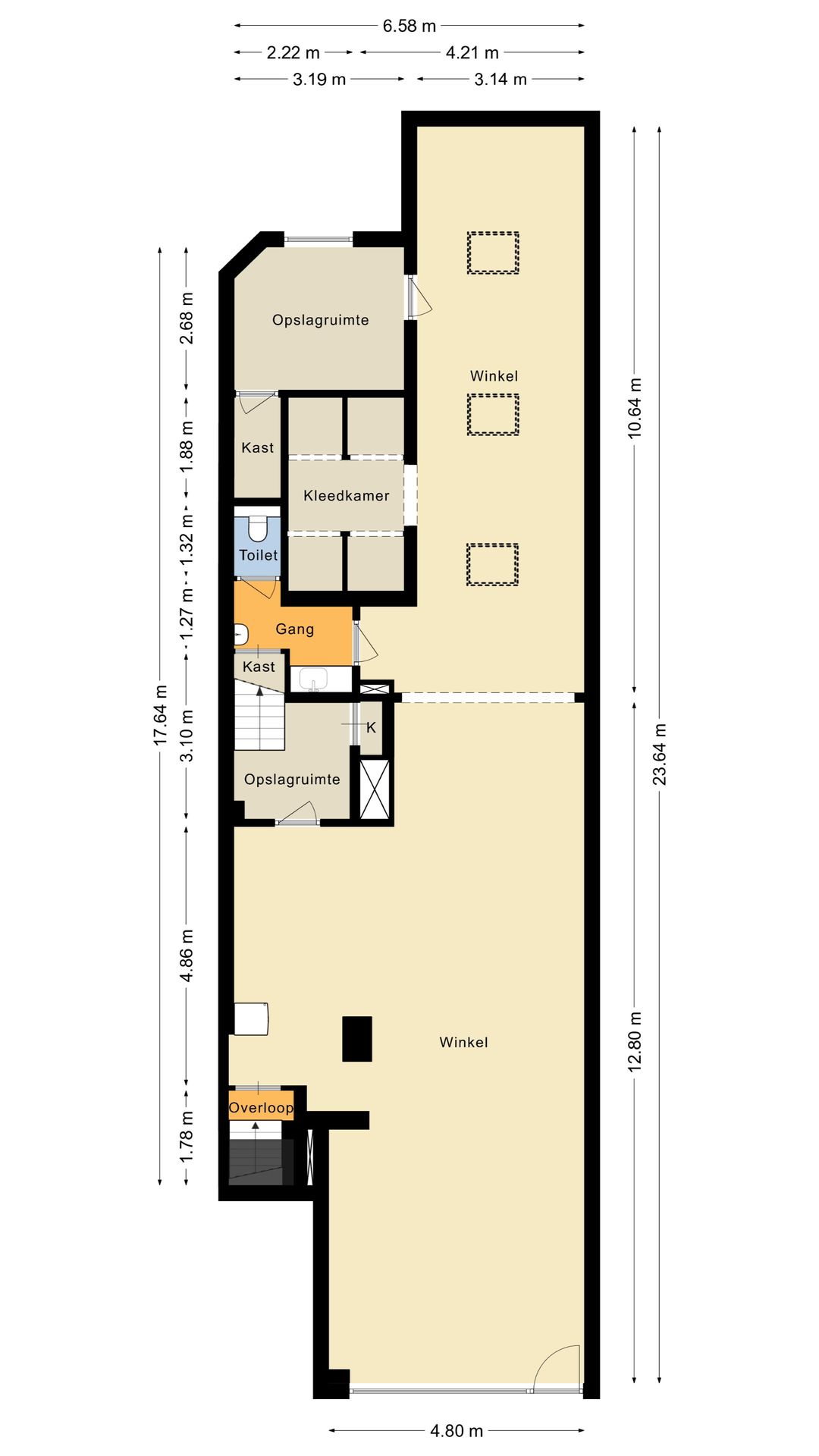 Winkelruimte en secundaire ruimte, in totaal circa 220,74 m² BVO, onderverdeeld als volgt: