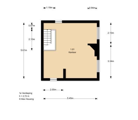 - Eerste verdieping (kantoor): circa 30 m² BVO