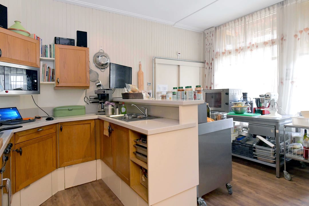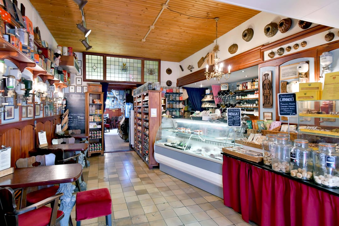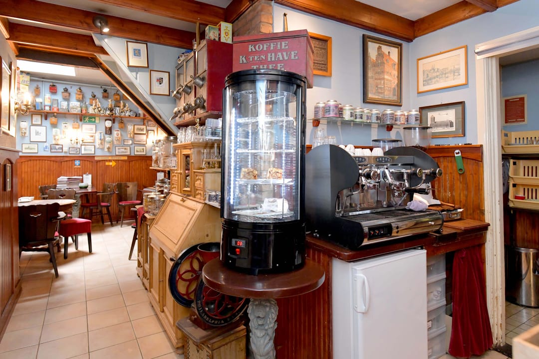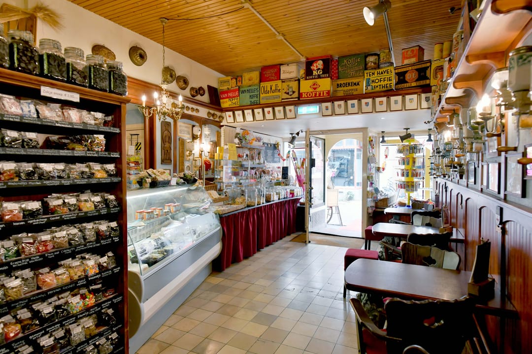 Sfeervolle winkelruimte met inpandige bedrijfswoning en achtergelegen keuken op de begane grond.