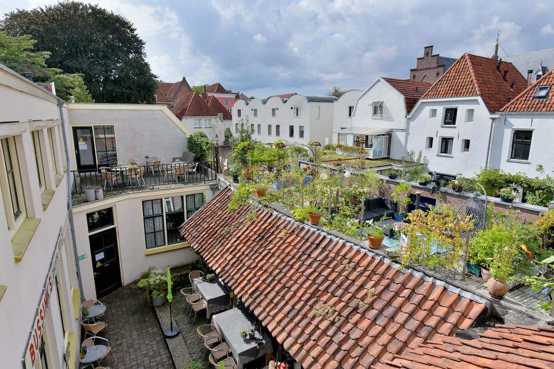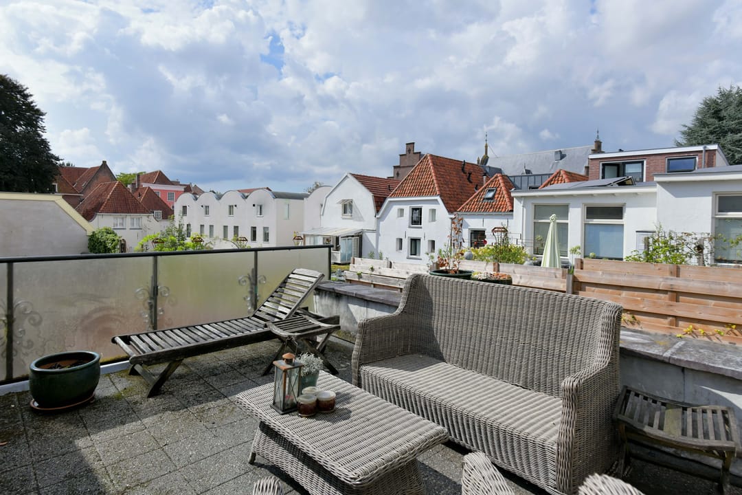 2 verdieping: tweepersoonsslaapkamer en dakterras en eenpersoonsslaapkamer;