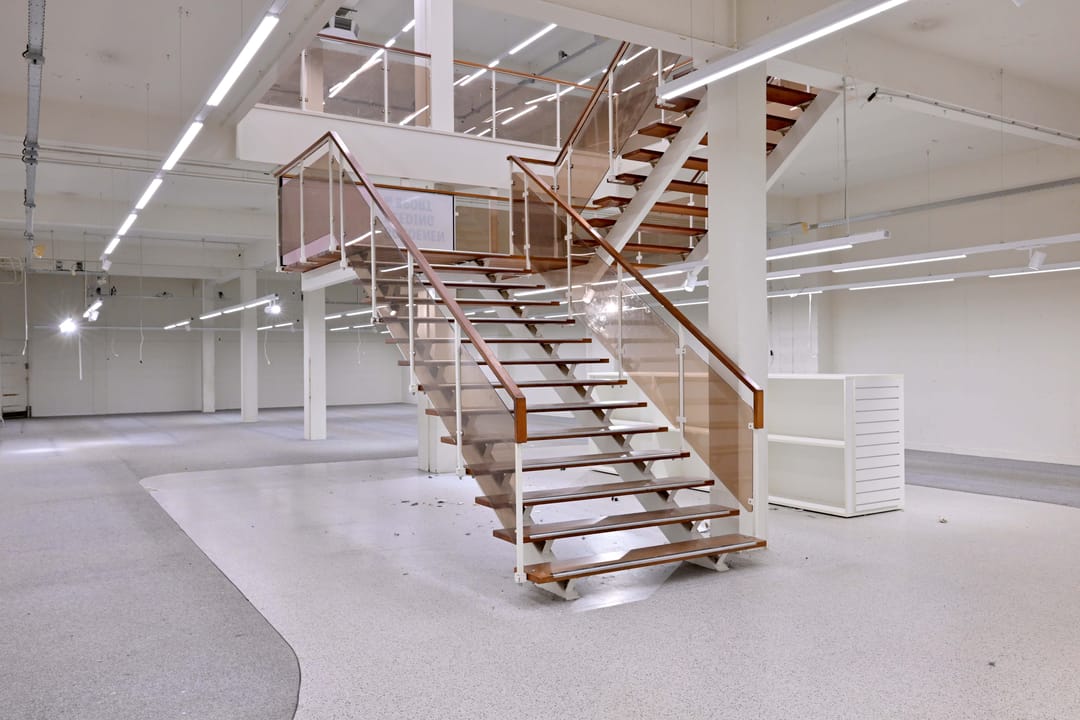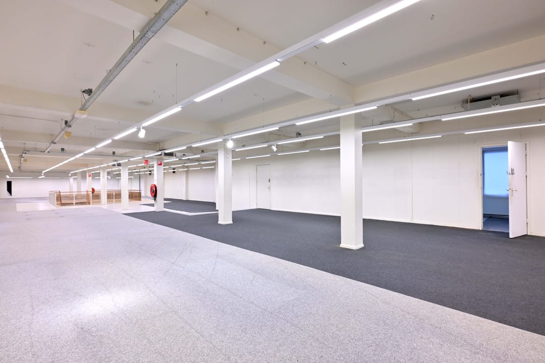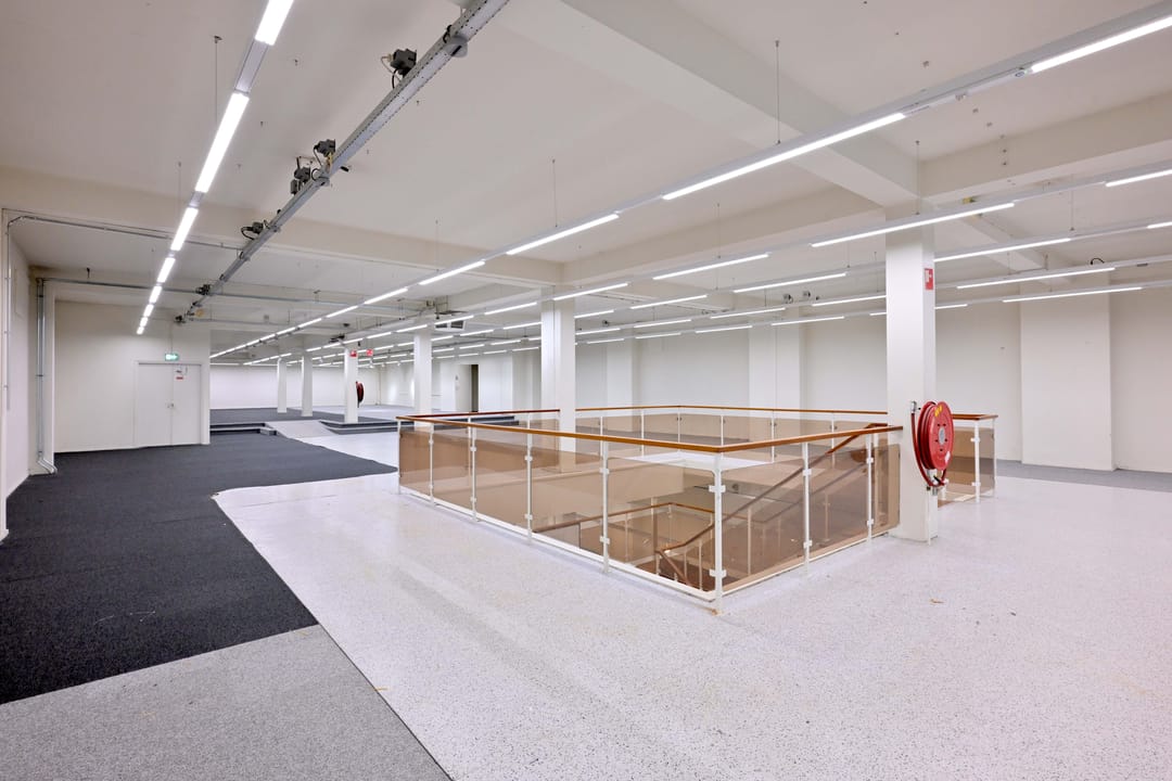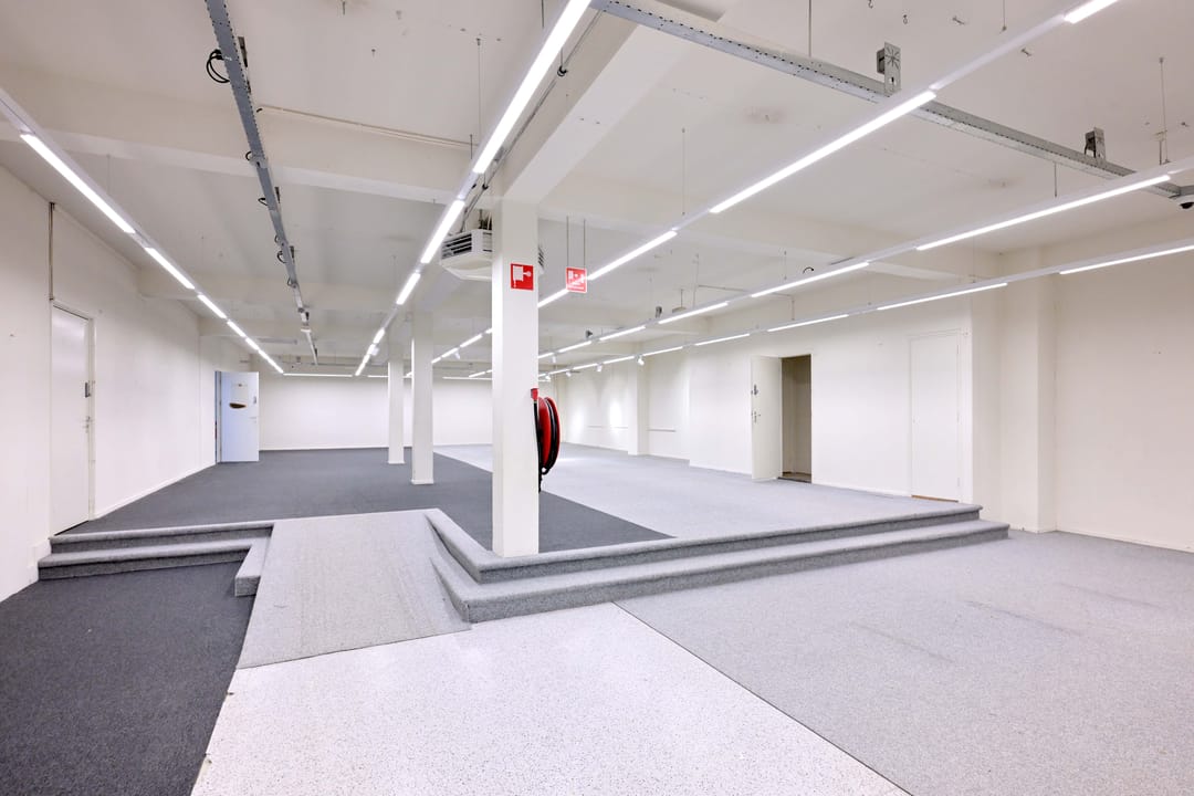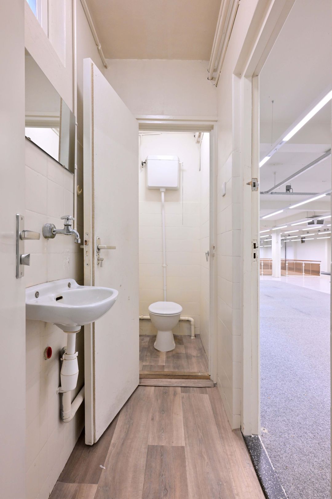 Toiletten, kantine, goederenlift, systeemplafond met verlichtingsarmaturen