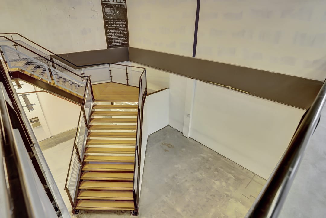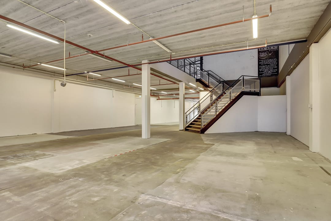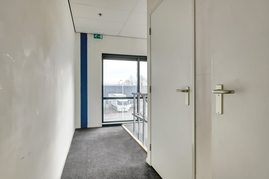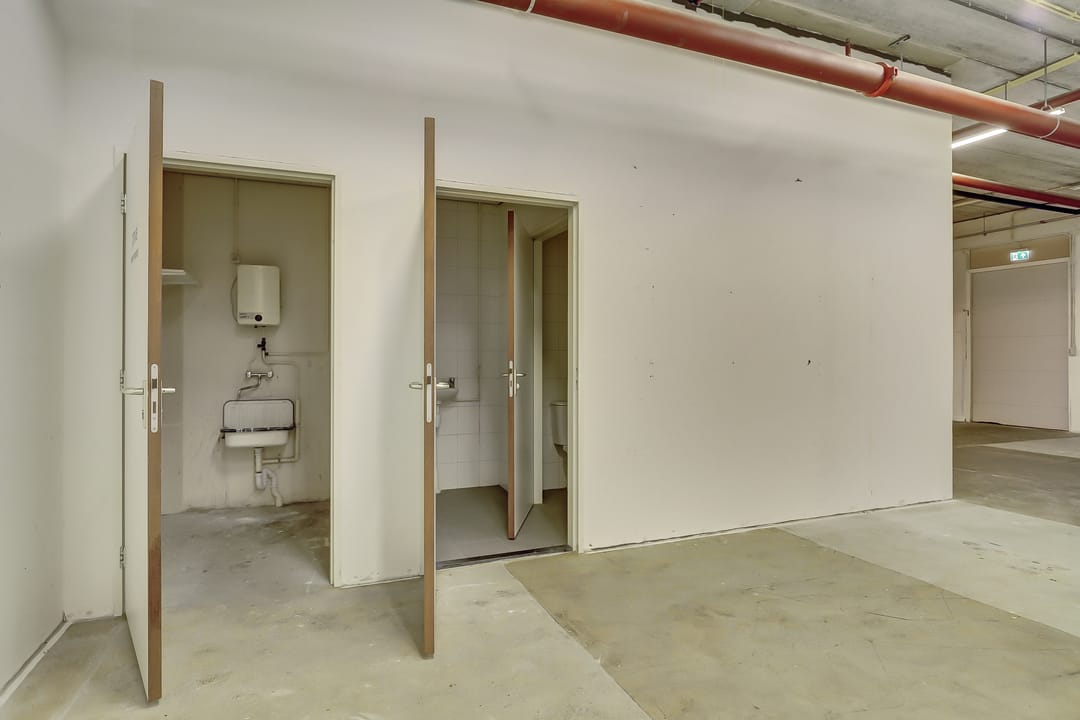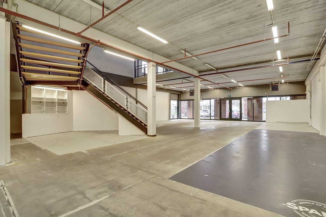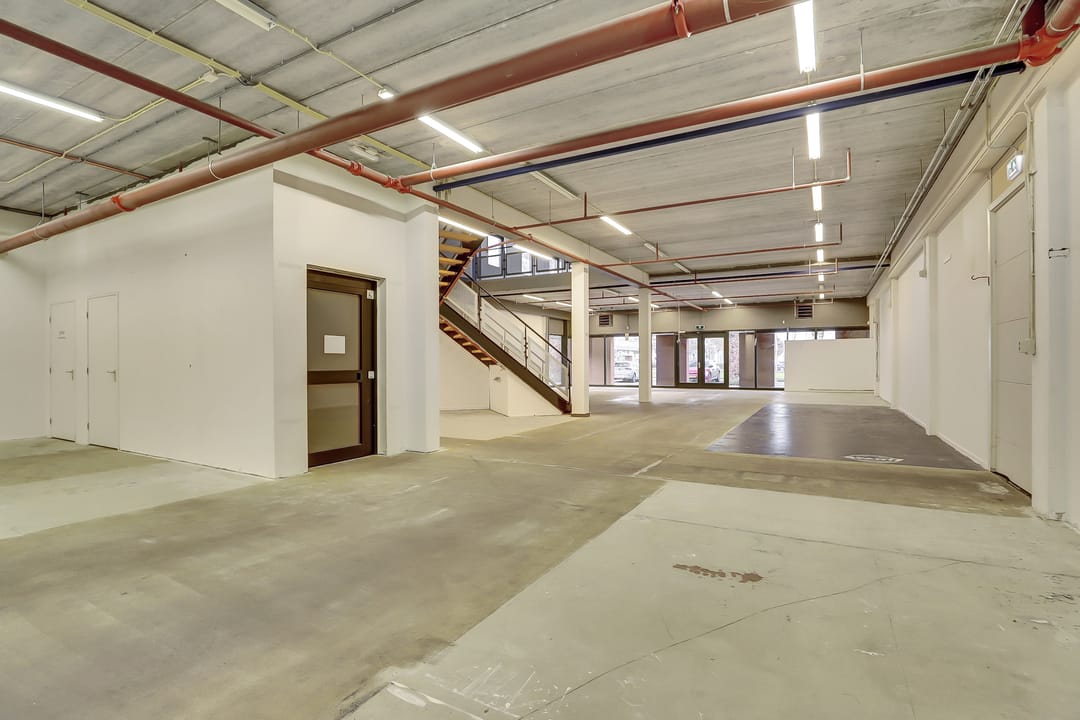 De bedrijfsruimte heeft een vloeroppervlak van ca. 947m² verdeeld over 2 verdiepingen, waarbij de eerste verdieping bereikbaar is middels een brede trap en een lift. Uiteraard mogen op beide verdieping de toiletten niet ontbreken en is een opslagruimte en keuken aanwezig.