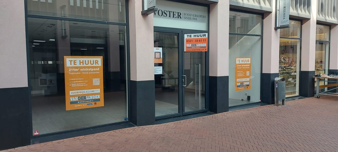 Mooie lichte entree met dubbele openslaande deuren en hoge etage. In de winkelruimte is een inrichting als luxe modewinkel met kleedruimten aanwezig. De winkel is voorzien van een stenen vloer en systeemplafond met lichtplan door middel van diverse inbouwspots. Naast de winkelruimte (180 m2) beschikt het pand over een kantoor/opslagruimte (34 m2) en pantry voorzien van keukenblok alsmede een aparte toiletruimte met voorportaal. Via dit voorportaal is het winkelpand verbonden met een achteringang.
