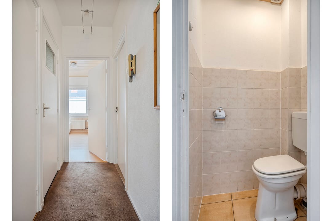 Overloop met toegang tot dakterras, woonkamer, keuken, toilet en 2e verdieping d.m.v. een vaste trapopgang.