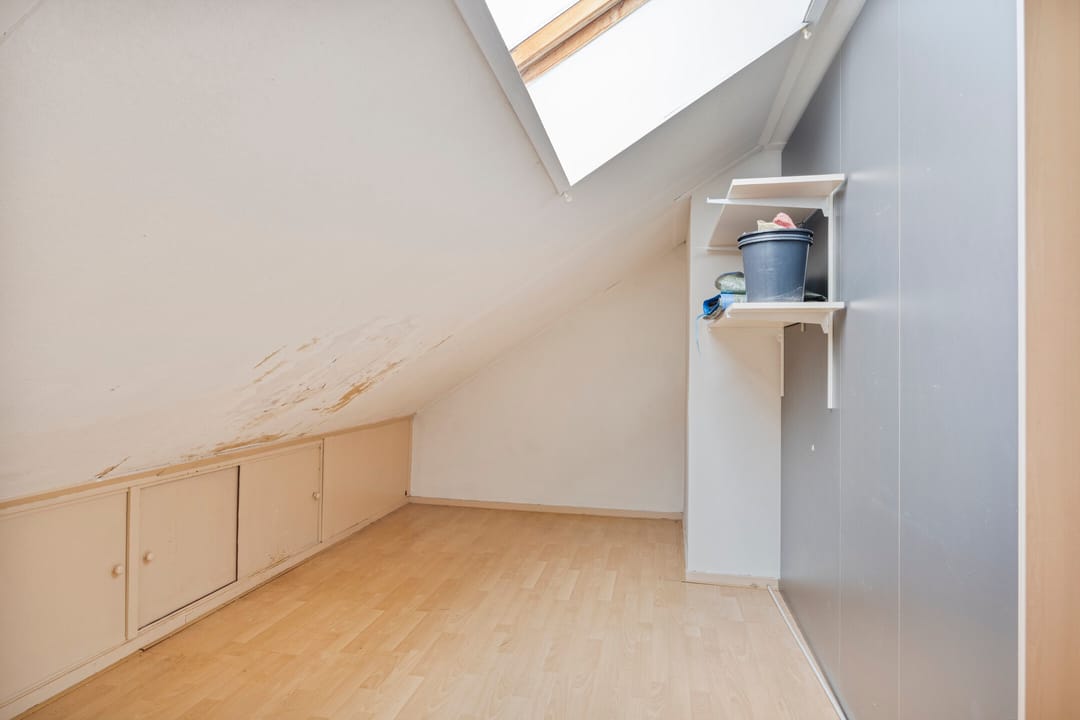 Overloop met toegang tot slaapkamer, zolderkamer en badkamer. Slaapkamer voorzien van dakkapel en afgewerkt met een laminaatvloer, stucwerkwanden en een decoratie plafond. Eventueel onder te verdelen in 2 slaapkamers.