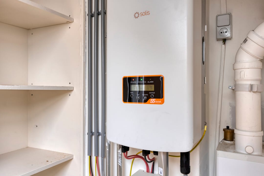Zolderkamer met laminaatvloer dient tevens als standplaats voor de c.v. ketel en omvormer voor de zonnepanelen.