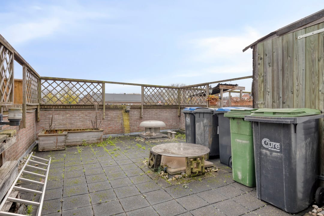 Dakterras (op het zuiden gesitueerd) voorzien van waterdoorlatende betontegels.