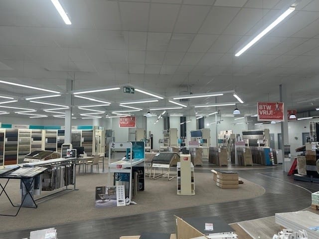 De beschikbare ruimte omvat circa 831 m², bestaande uit een ruime winkelruimte met aanvullende magazijnfunctie. Voorheen was hier Carpetright gevestigd. Het object wordt casco met pui opgeleverd en beschikt over een bestaande pui met warmtegordijn, een meterkast met eigen aansluitingen voor gas, water en elektra, plafond met verlichtingsarmaturen, verwarming en koeling via een airco-warmtepomp, een separate magazijnruimte met overheaddeur aan de voorzijde, een toilet met voorportaal en een pantry/kantine.