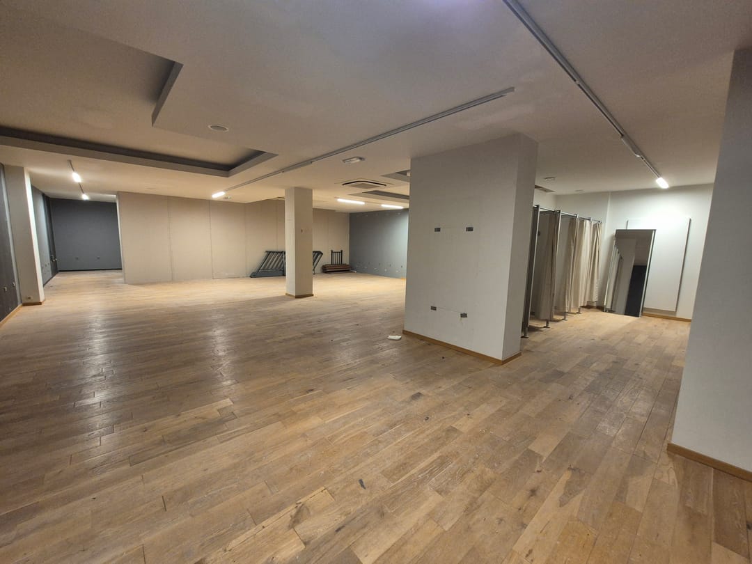 •Begane grond (ca. 226 m2): Een royale, diepe winkelruimte van circa 182 m2 met een vrije hoogte van 2,75 meter. Aan de achterzijde bevindt zich via een klein niveauverschil een extra opslag/entree van ca. 29 m2 en een kantoorruimte met kantine, keuken en toiletgroep (ca. 15 m2).