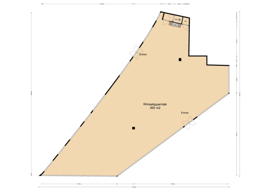 De winkelruimte beschikt over een oppervlakte van ca. 365 m².