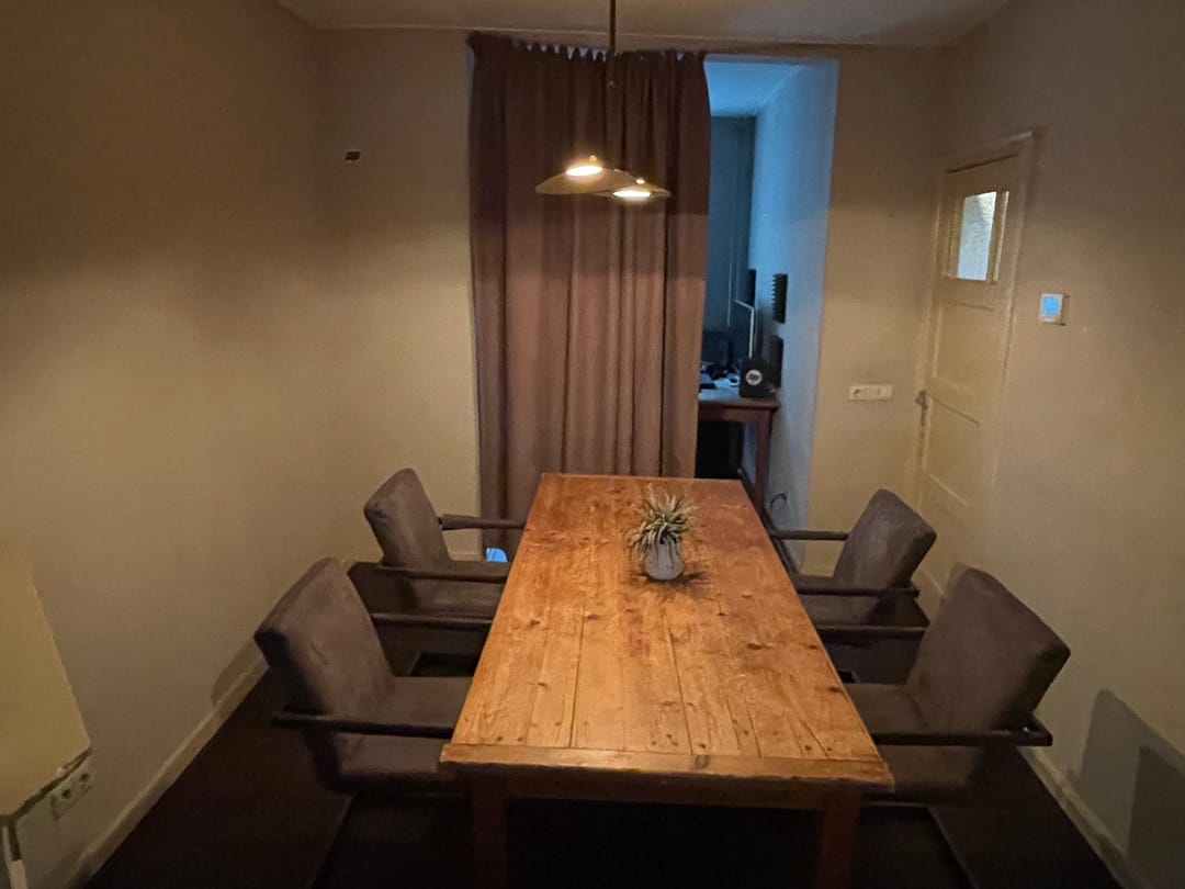 Eerste verdieping: entree, keuken, toilet, woonkamer en apart eetgedeelte.