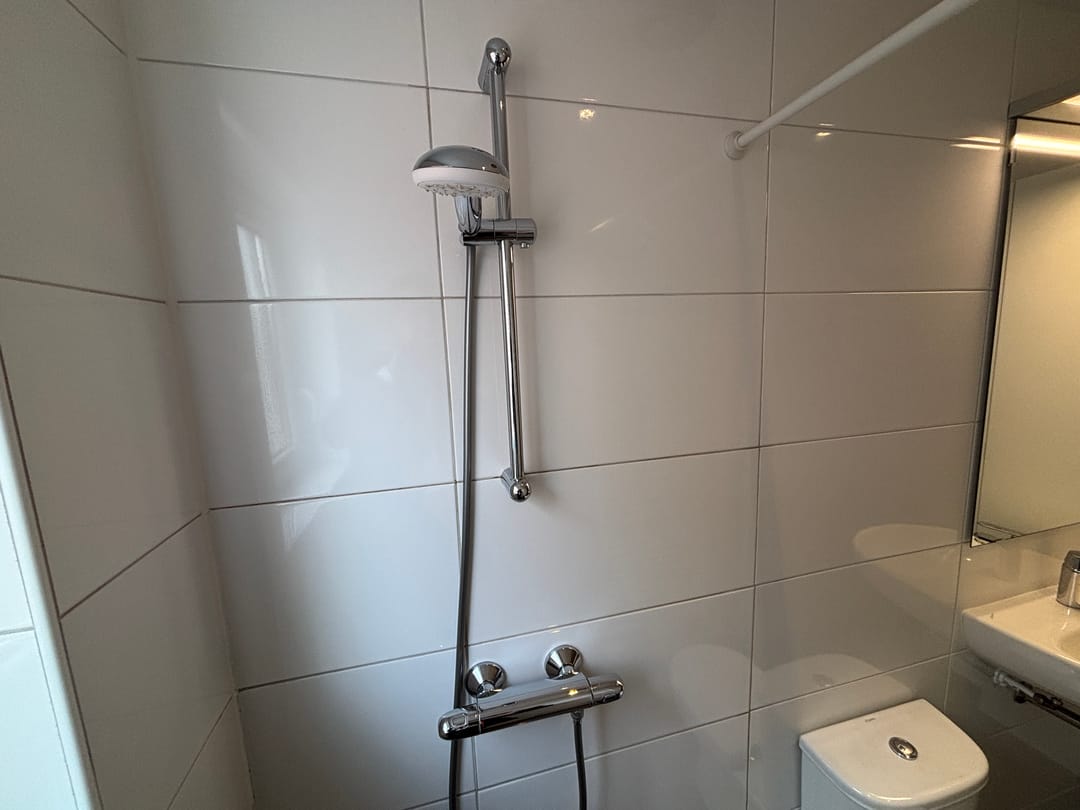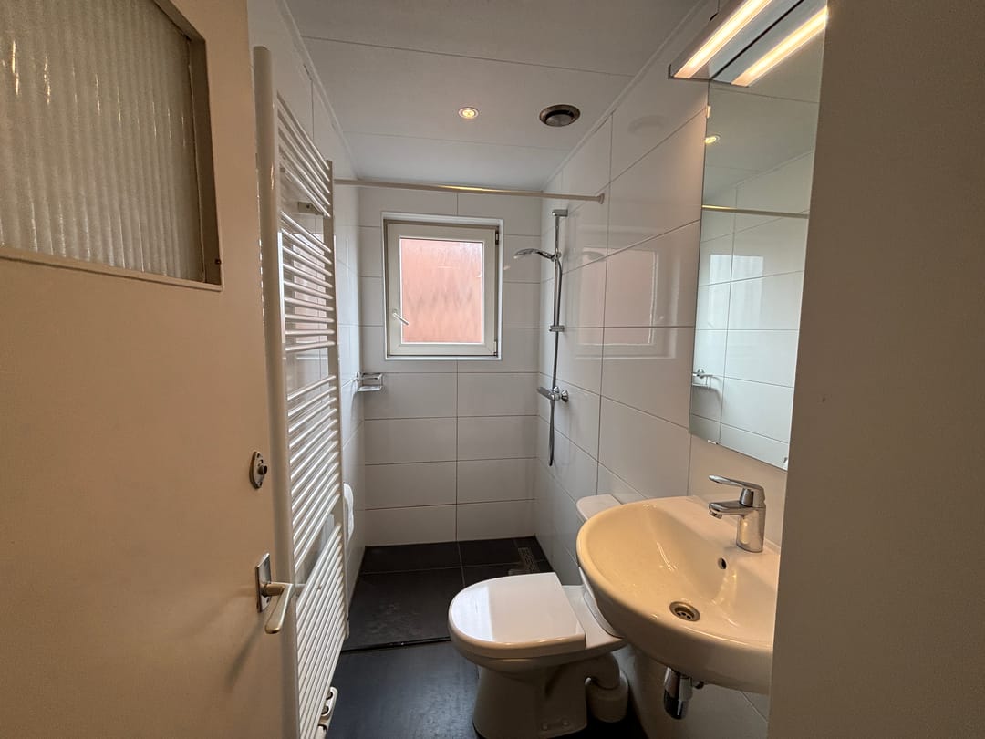 De bovenwoning (circa 90 m²) is bereikbaar via een eigen entree en trapopgang. De woning is voorzien van een woonkamer met sfeervolle gashaard, een keuken met inbouwapparatuur (kookplaat, oven, vaatwasser en koel-/vriescombinatie), twee slaapkamers, een badkamer met douche en toilet, en een separate ruimte voor wasmachine en droger. Tevens beschikt de woning over een zolder en een ruim dakterras op het zuiden.