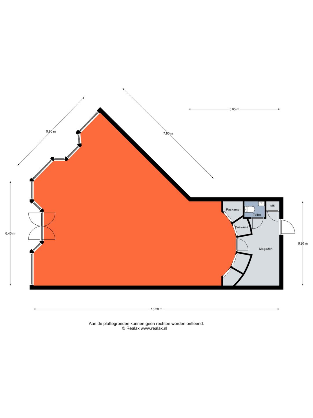 De oppervlakten zijn gemeten door verhurend makelaar uit een kopie bouwtekening. Het opgegeven metrage is derhalve indicatief; er kunnen geen rechten aan worden ontleend noch kan er sprake zijn van enige verrekening achteraf.