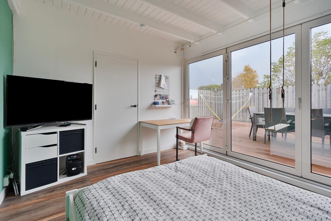 De 1e (slaap)kamer is voorzien van een laminaatvloer en mdf plafond. De 2e slaapkamer is aan de achterzijde gelegen, voorzien van een airco-unit en geeft toegang tot de 3e slaapkamer. Deze kamers zijn eveneens voorzien van een laminaatvloer en beide kamers hebben middels aluminium harmonicadeuren zicht op en toegang tot het ruime dakterras.