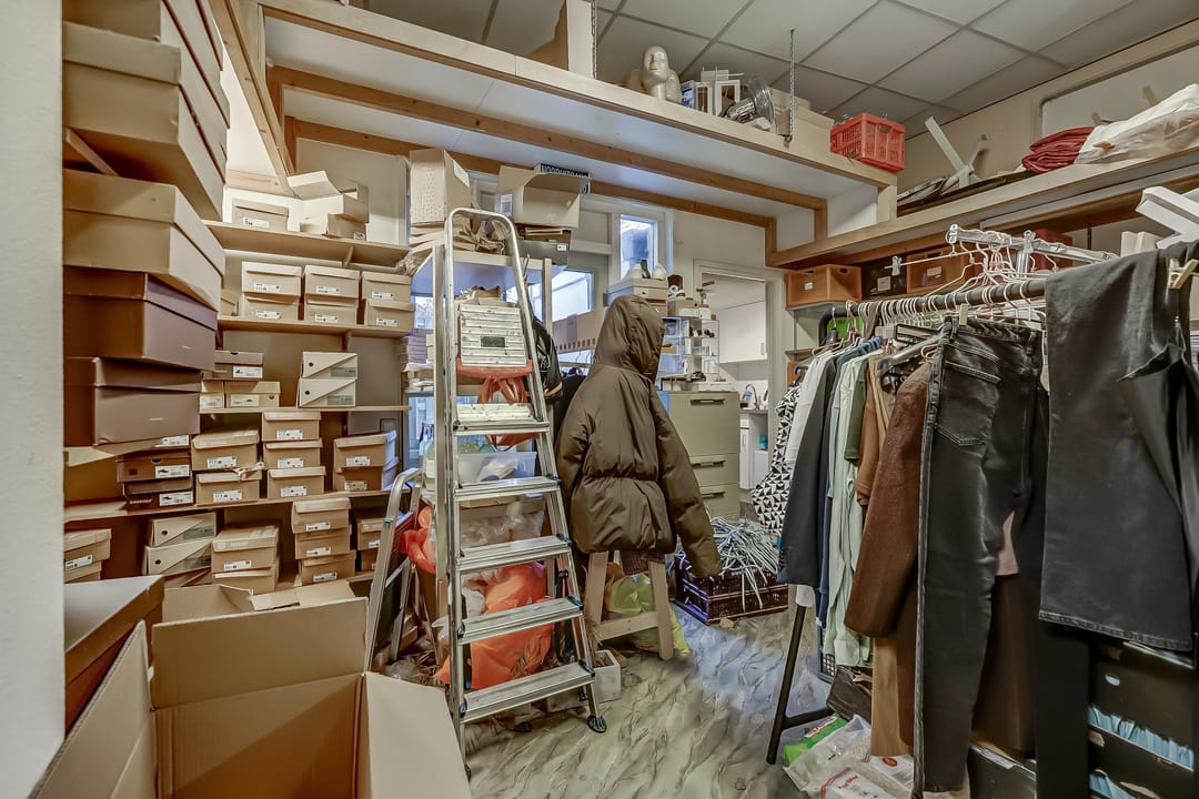 Bij binnenkomst stap je direct de winkelruimte in, momenteel verhuurd aan een kledingwinkel. Dankzij de grote raampartijen aan de voorzijde is er volop ruimte voor een aantrekkelijke etalage. Achter de winkel bevindt zich een royale werkplaats of opslagruimte, ideaal voor diverse doeleinden. Verder vind je hier een keuken, een toilet en een achteruitgang met toegang tot een tuintje.