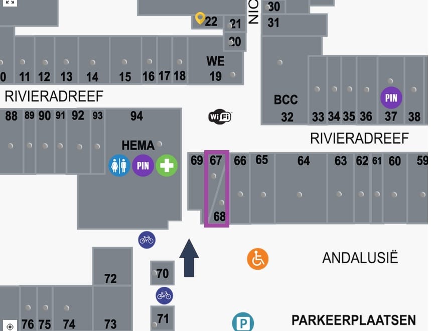 De ruimte is gelegen in het hart van winkelcentrum Haarlem-Schalkwijk, met directe buren als ICI Paris XL, Douglas, Pearle Opticiens en vanHaren, en schuin tegenover Nelson. Daarnaast zijn ook bekende winkelketens zoals Action en C&A in het winkelcentrum gevestigd.