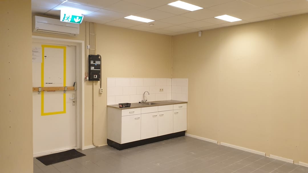 Een personeelsruimte/magazijn, toilet en keukenvoorziening zijn aanwezig.
