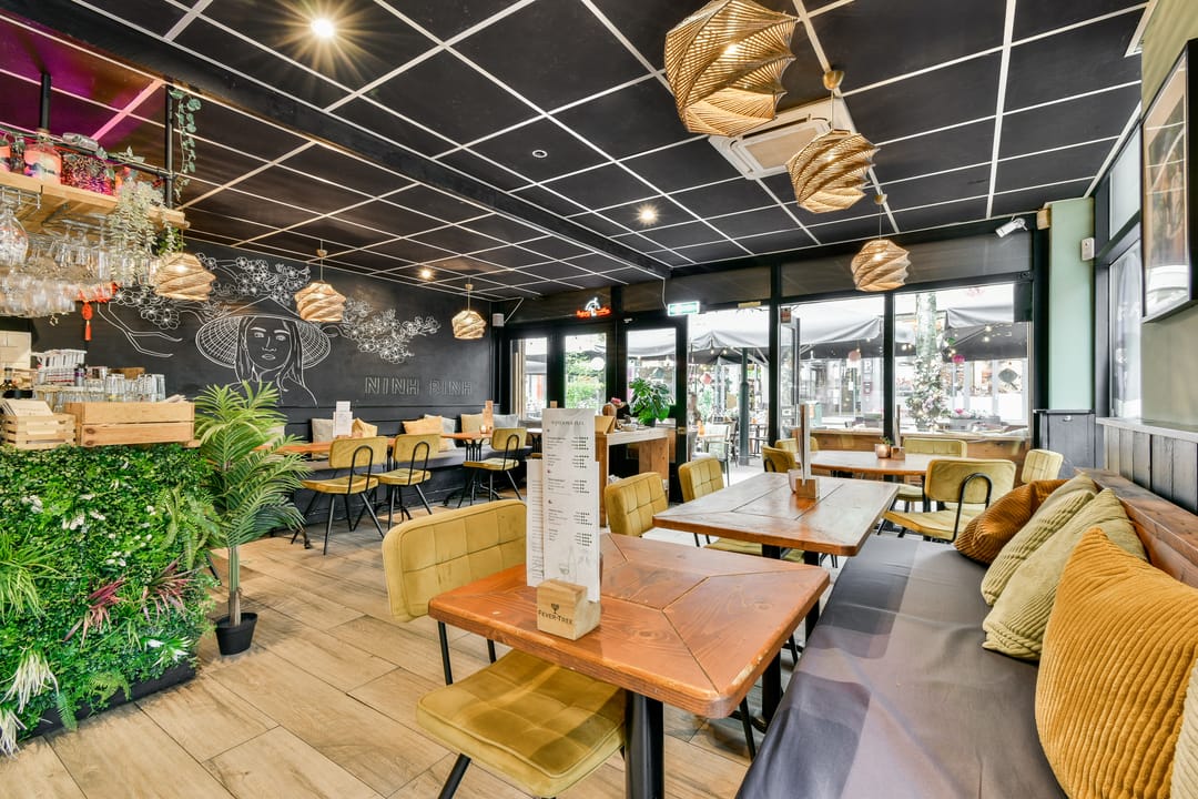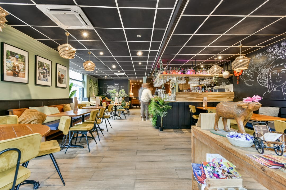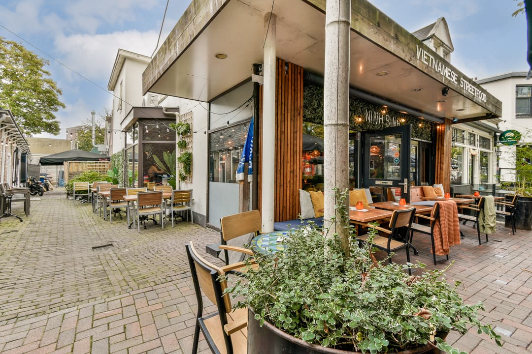 The entire property is leased to the successful restaurant Ninh Binh, an established name in Hilversum with solid operations and a stable lease agreement. An attractive investment product with a market-based rent. The catering space of approximately 139 m² has an inviting appearance and is located on one of the busiest shopping and catering streets in Hilversum. The restaurant has a spacious terrace at both the front and side, a cosy bar with seating and sufficient seating in the restaurant, a fully equipped kitchen and practical storage space. The stairs to the first floor lead to the guest toilets and access to the upstairs apartment of approximately 47 m². This apartment has a bright living room, two bedrooms, a kitchen and a bathroom. The property is in good condition and comes with a NEN measurement report.