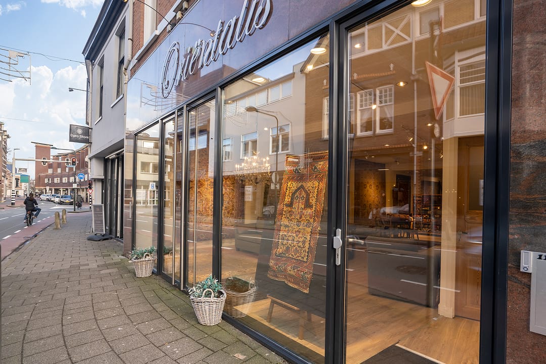 De winkelruimte op de begane grond heeft een oppervlak van 96,6 m2 en een plafondhoogte van ruim 3 meter. Ook is er een achterliggende kantoorruimte van 18,8 m2 en een royale opslagkelder (28,5 m2).