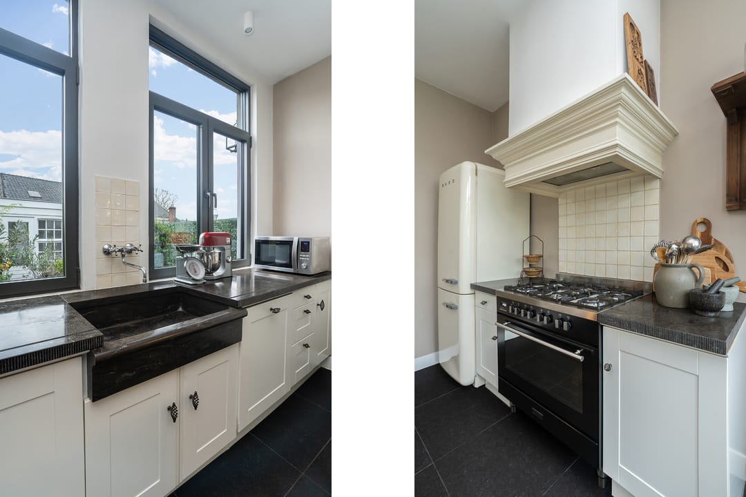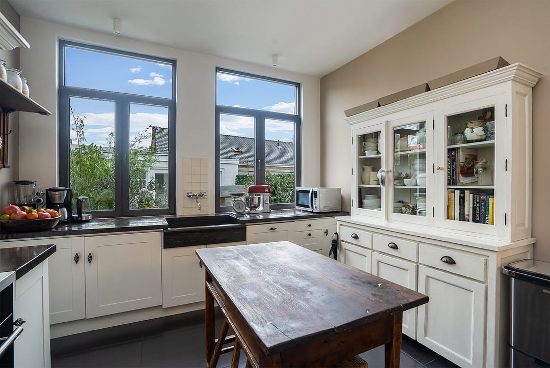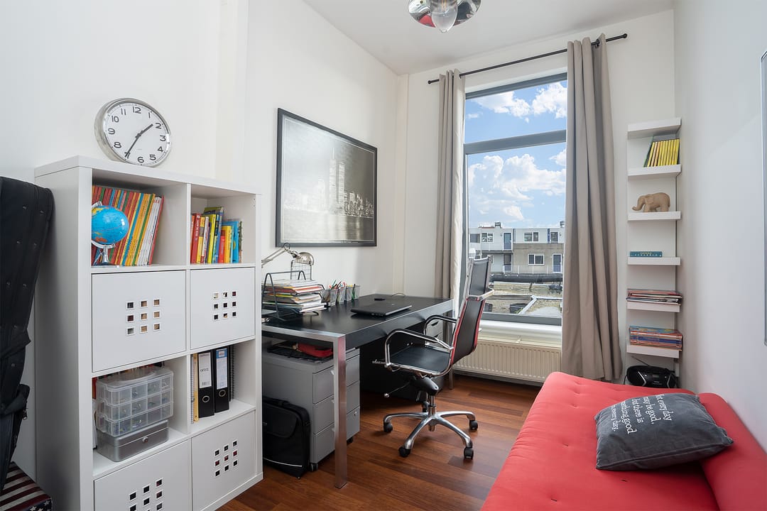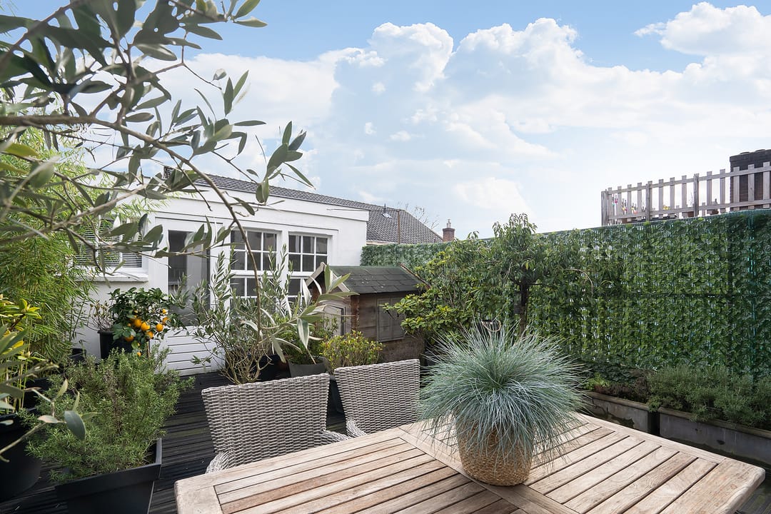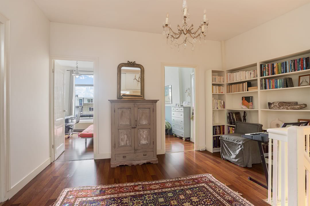De woning heeft een woonoppervlak van 163 m2. Er is een royale keuken en er zijn vier slaapkamers. Achter het zonnige terras is er tevens een aparte woonruimte, voorzien van eigen badkamer. Deze ruimte kan bijvoorbeeld worden gebruikt als extra kantoorruimte, als aparte studio, als atelier of voor mantelzorg.