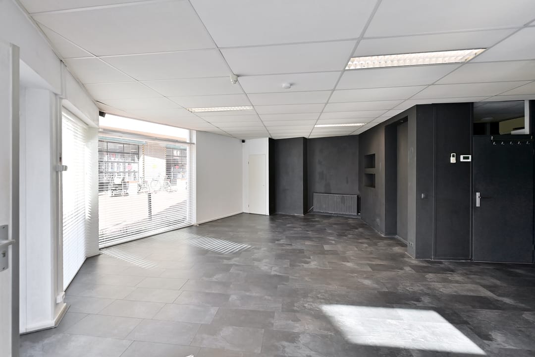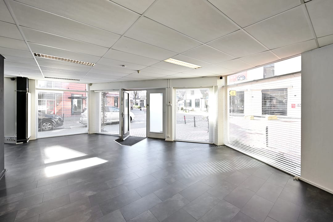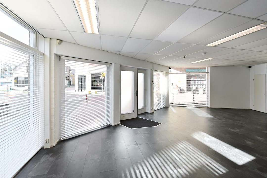 Een modern kantoor- (annex winkelruimte), markant gelegen in de Hilversumse binnenstad, nabij het Centraal Station, het druk bezochte winkelgebied en de parkeergarage Q-Park Markt.