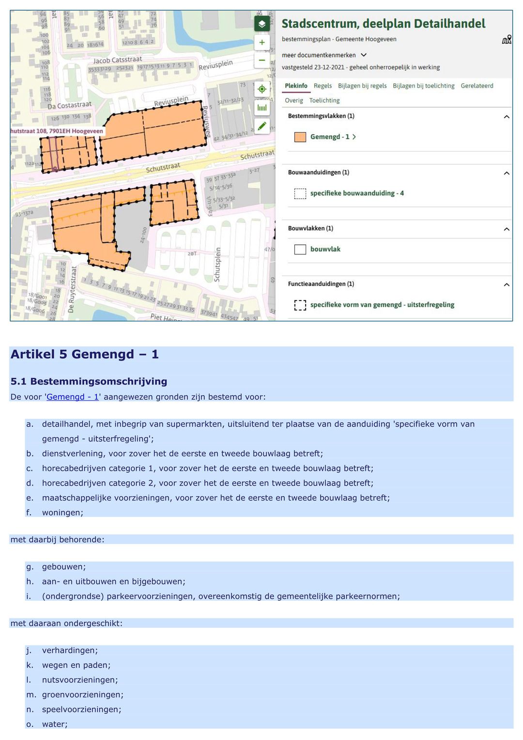 Bestemmingsplan ‘Stadscentrum, deelplan Detailhandel, enkelbestemming ‘Gemengd- 1’, bouwaanduiding ‘specifieke bouwaanduiding - 4’, functieaanduiding ‘specifieke vorm van gemengd - uitsterfregeling’.