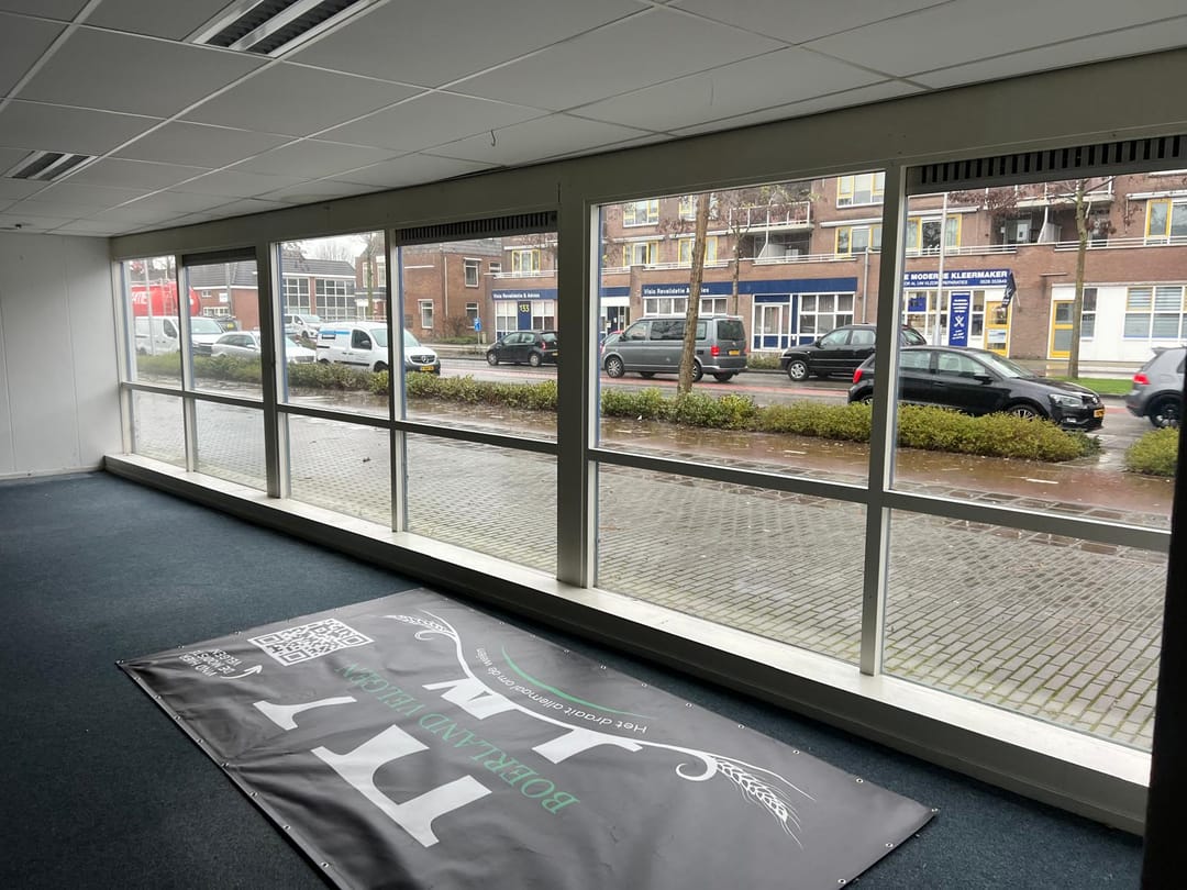 Riante showroom met veel lichtinval en goede zichtlijnen.