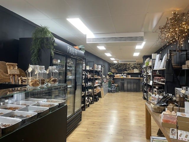 - De gehele winkelruimte is voorzien van een tegelvloer,