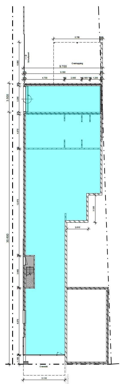 Aan de achterkant van de winkel is nog een garage aanwezig met een oppervlakte van ca 18 m².