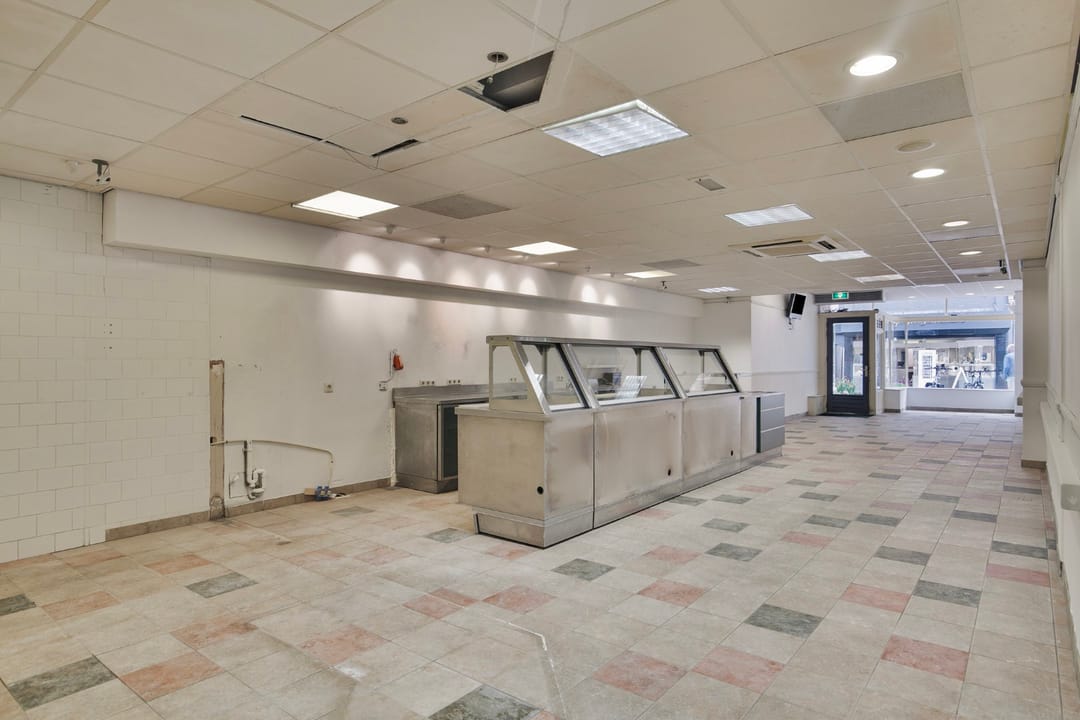 Binnen tref je een open ruimte met een vitrine, een toonbank, en koelingen. Ideaal voor een verswinkel, delicatessenzaak of elke andere retailer. Deze praktische en overzichtelijke ruimte maakt het eenvoudig om een klantvriendelijke en uitnodigende sfeer neer te zetten, die je winkelbezoekers niet snel zullen vergeten.