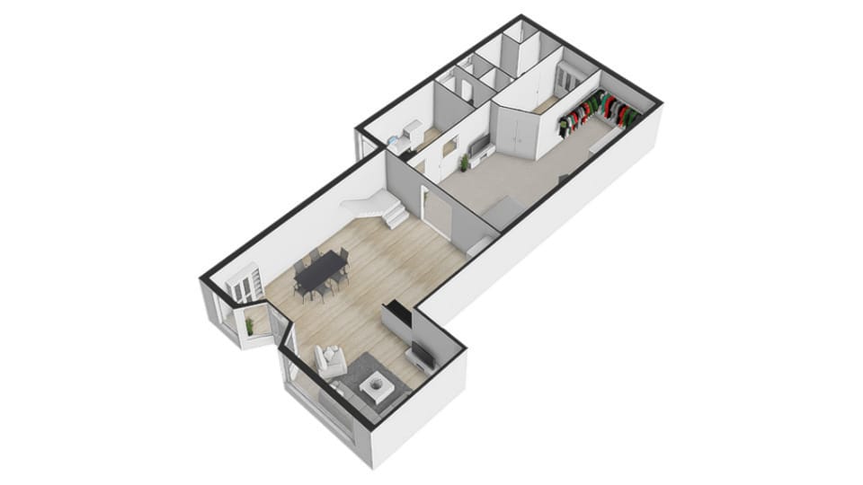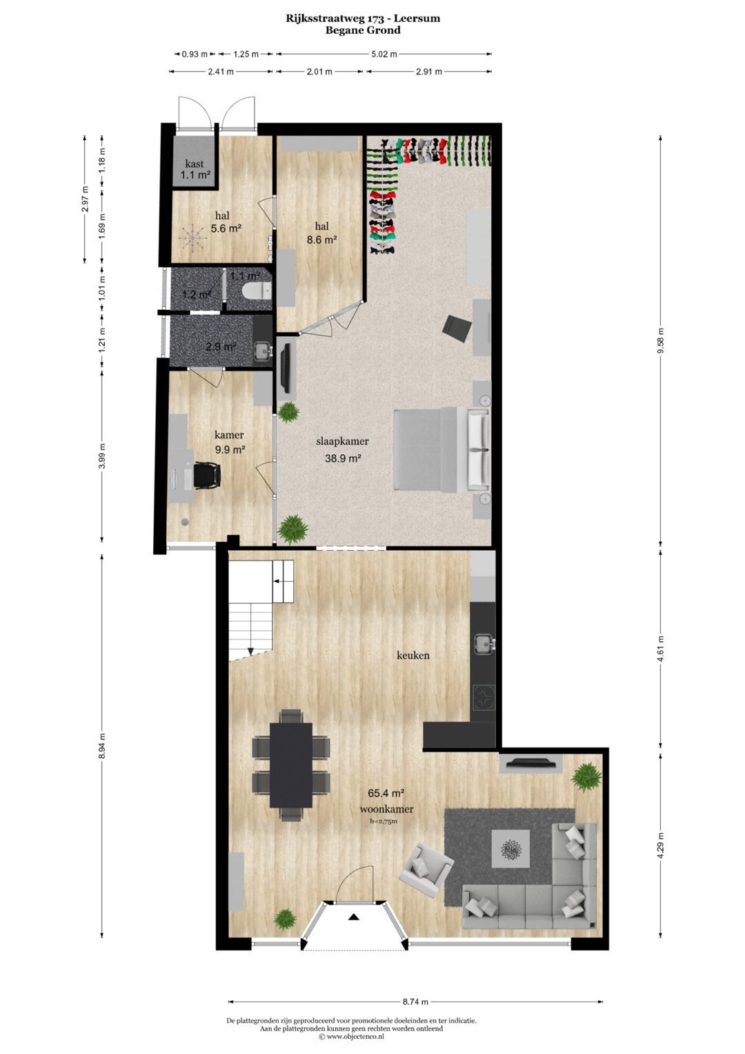 De diepe achtertuin op het zuiden vormt een waardevol extra: volop zon en ruimte, ideaal voor tuinliefhebbers of verdere uitbreiding (uiteraard binnen de gemeentelijke kaders). Het perceel grenst achter aan de parkeerplaatsen van De Smidse.
