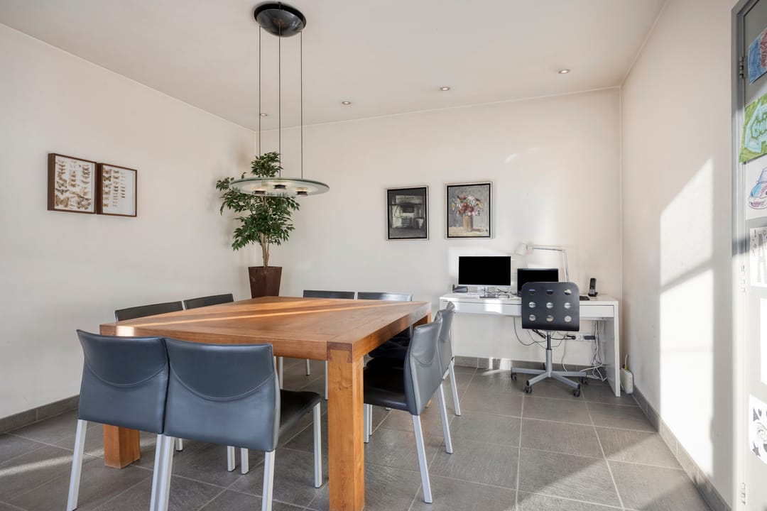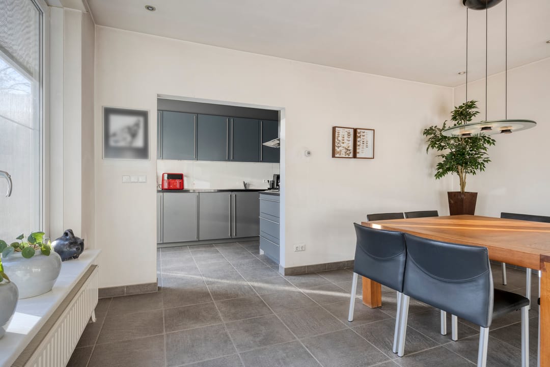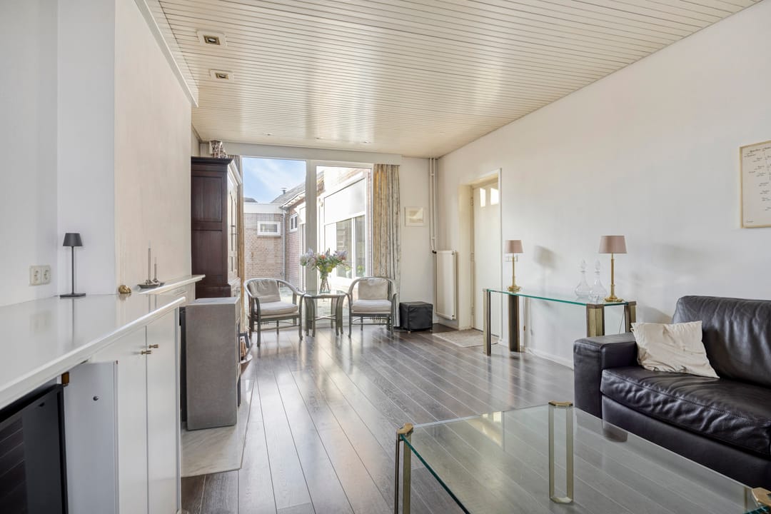 - De woon-, eetkamer en keuken zijn voorzien van inbouwspots