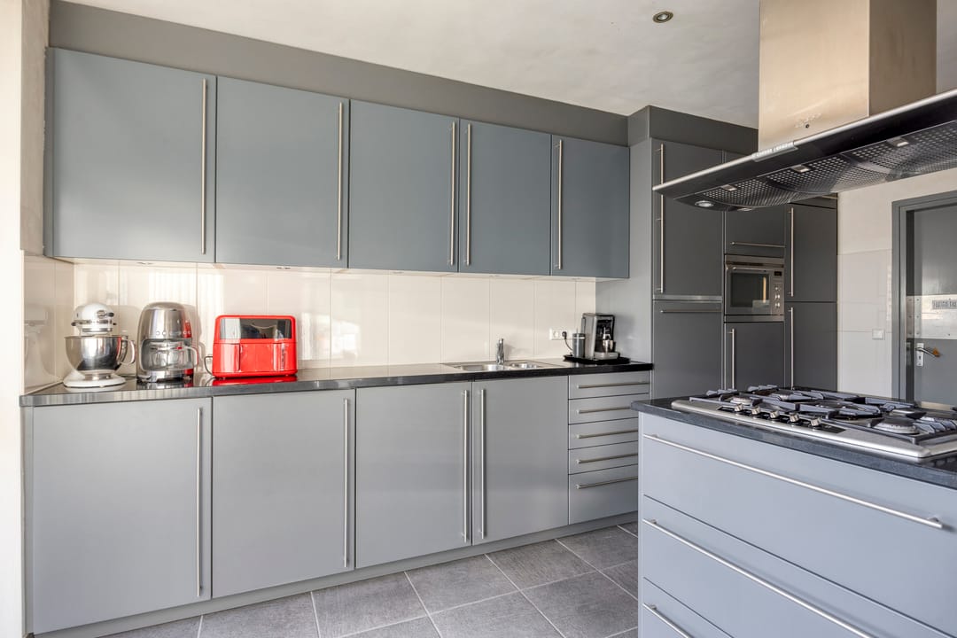 - Luxe keuken voorzien van koelkast, vaatwasser, oven, gasfornuis met afzuigkap