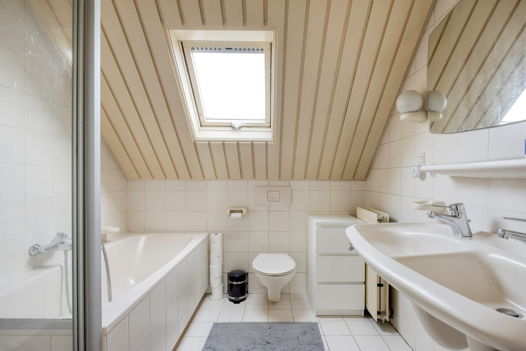- Badkamer voorzien van ligbad, douche, dubbele wastafel met meubel en een toilet