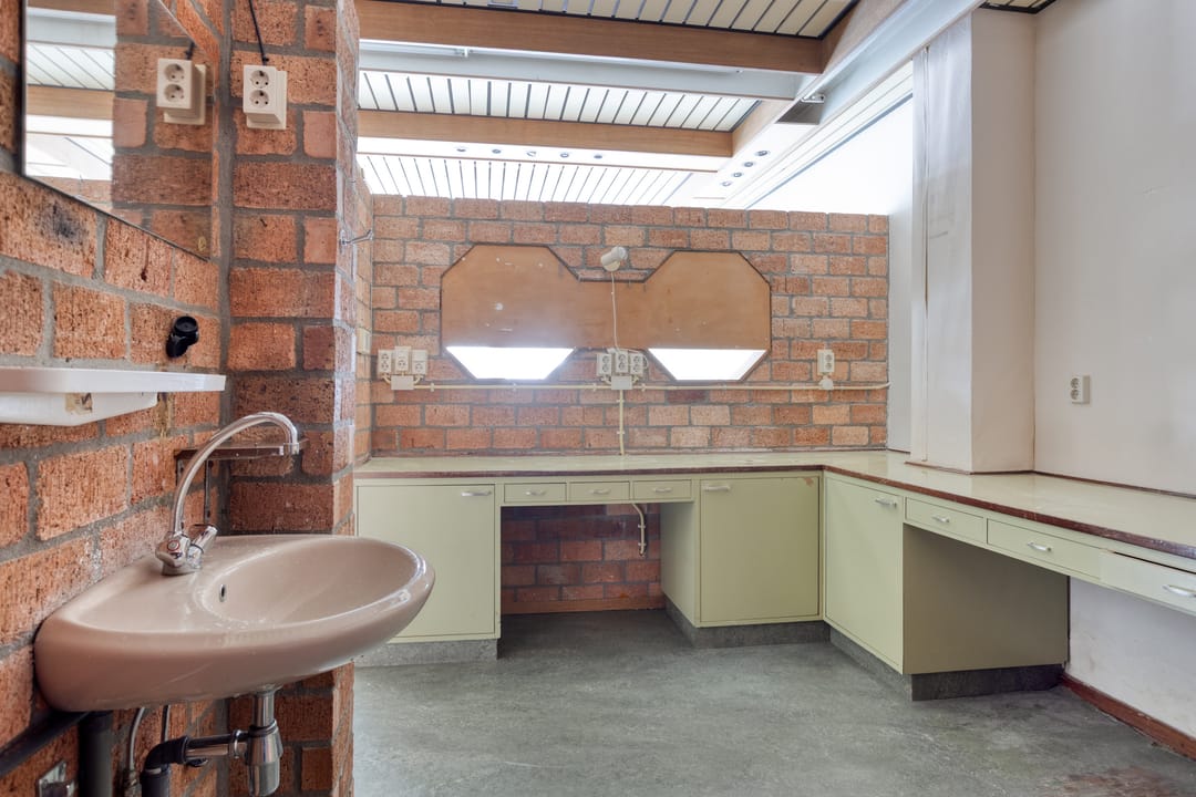 -Portaal met open kantoorruimte met werkblad en wastafel