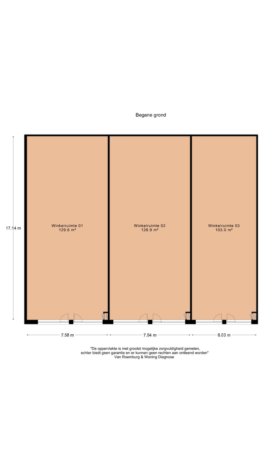 ruimte 1: hoekpand: ca. 362 m² winkelruimte. De gehele ruimte is flexibel in te delen naar uw wensen. Ook is het mogelijk om deze commerciële ruimte te splitsen in drie gedeelten; te weten 130 m², 129 m² en 103 m². De gehele winkelruimte is ca. 21.75 meter breed en ca. 17.4 meter lang.